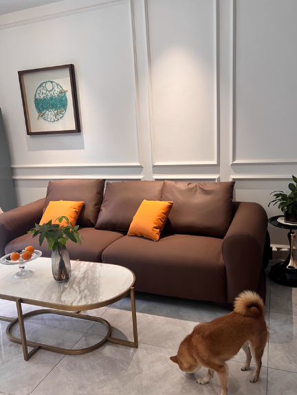 The sofa fabric is nice, and the style is just what I wanted — super comfortable and relaxing to sit on.