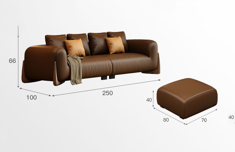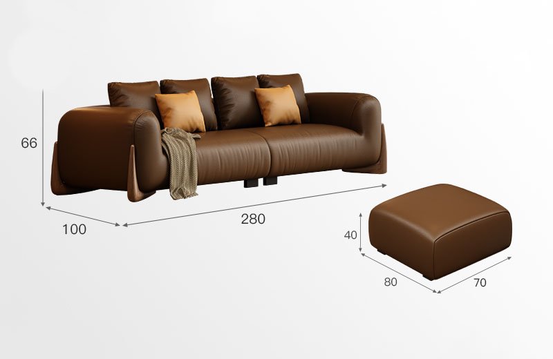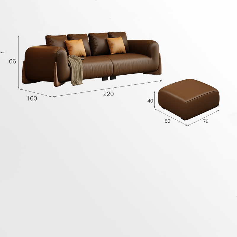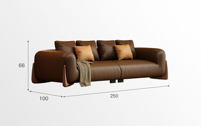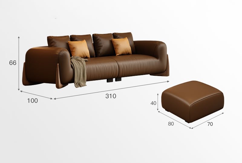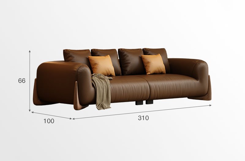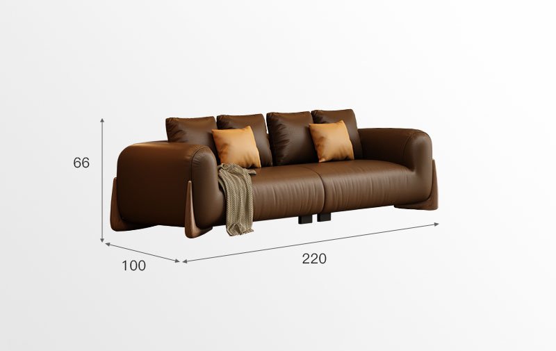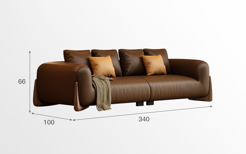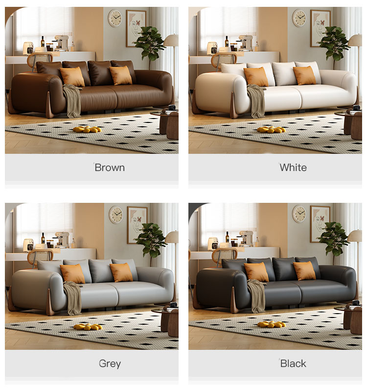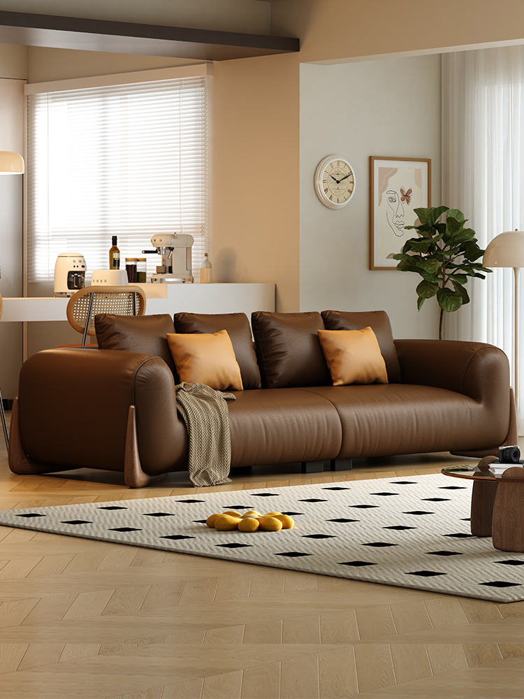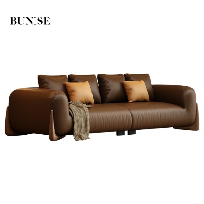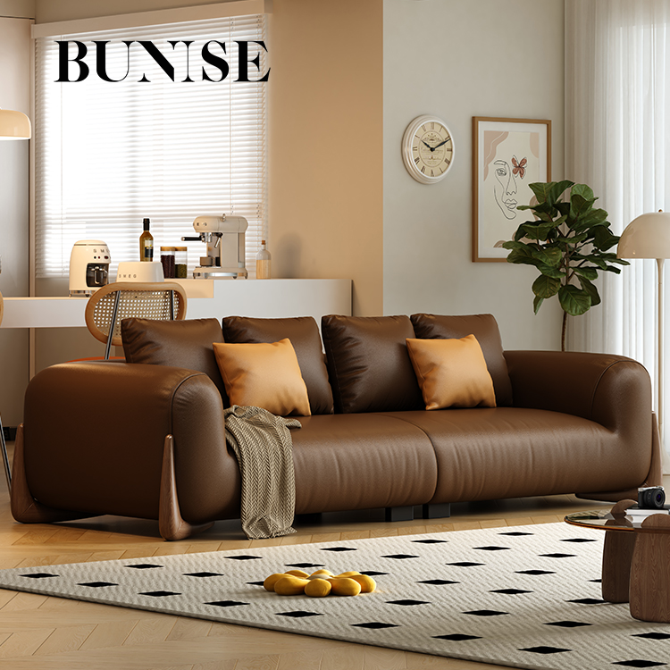 BUNISE leather sofa with removable backrest, minimalist Italian style, extra wide seating depth, villa living room, horizontal hall, large flat floor, modular leather sofa