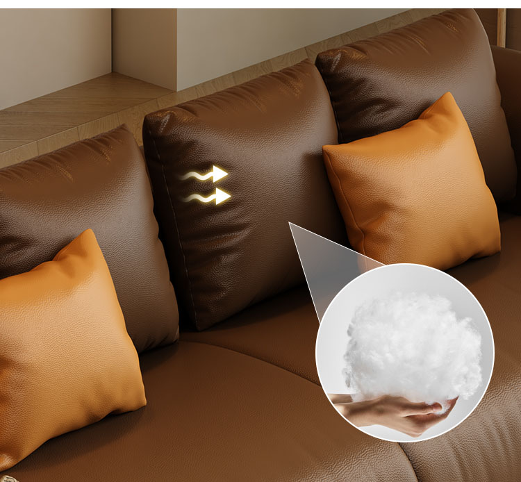 The leather on this sofa is top-notch — comfortable to sit on and completely odor-free.