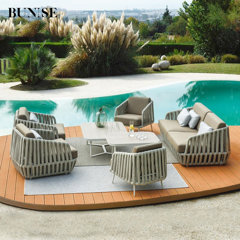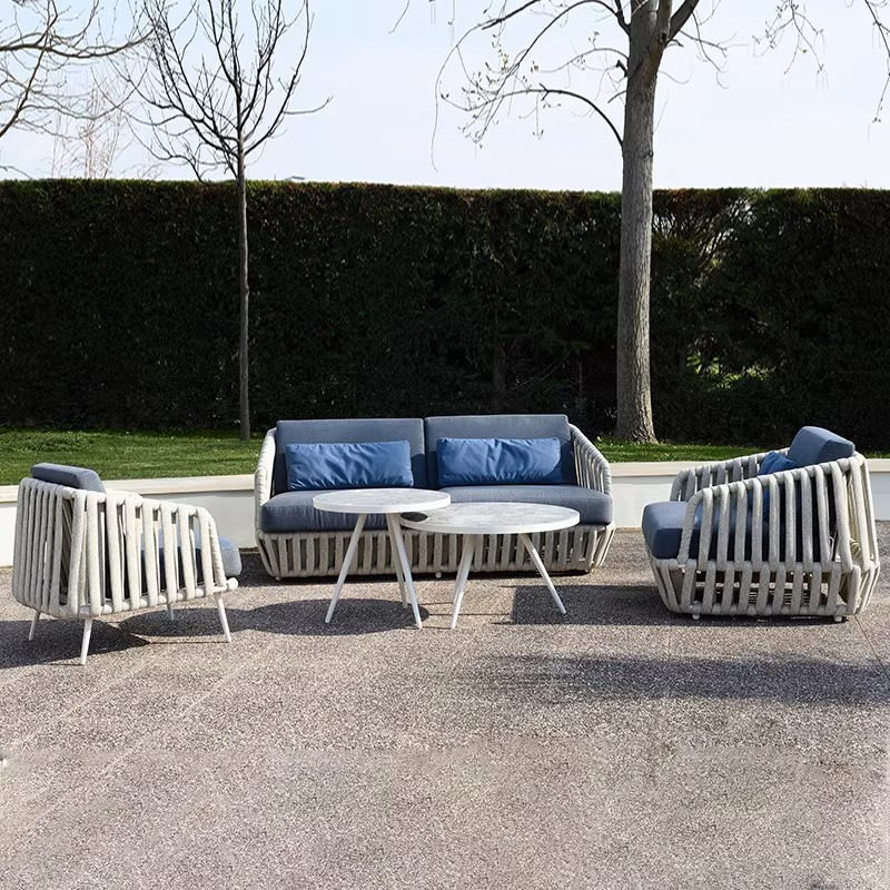 Outdoor Rattan Furniture Sofa Set for Garden and Holiday Villa Italian Style Luxury Waterproof Sun Resistant