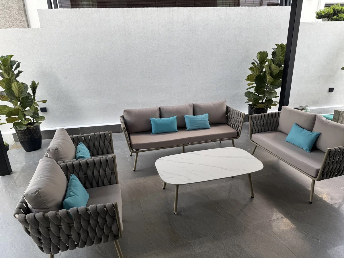 The cushion is extremely plump and has a great texture. Placing it on the terrace has significantly elevated the overall class of the space. At first, I was worried about the installation, but it turned out to be a totally unnecessary concern. The packaging is very careful, with no bumps or scratches at all. It’s really excellent, and I highly recommend buying it.