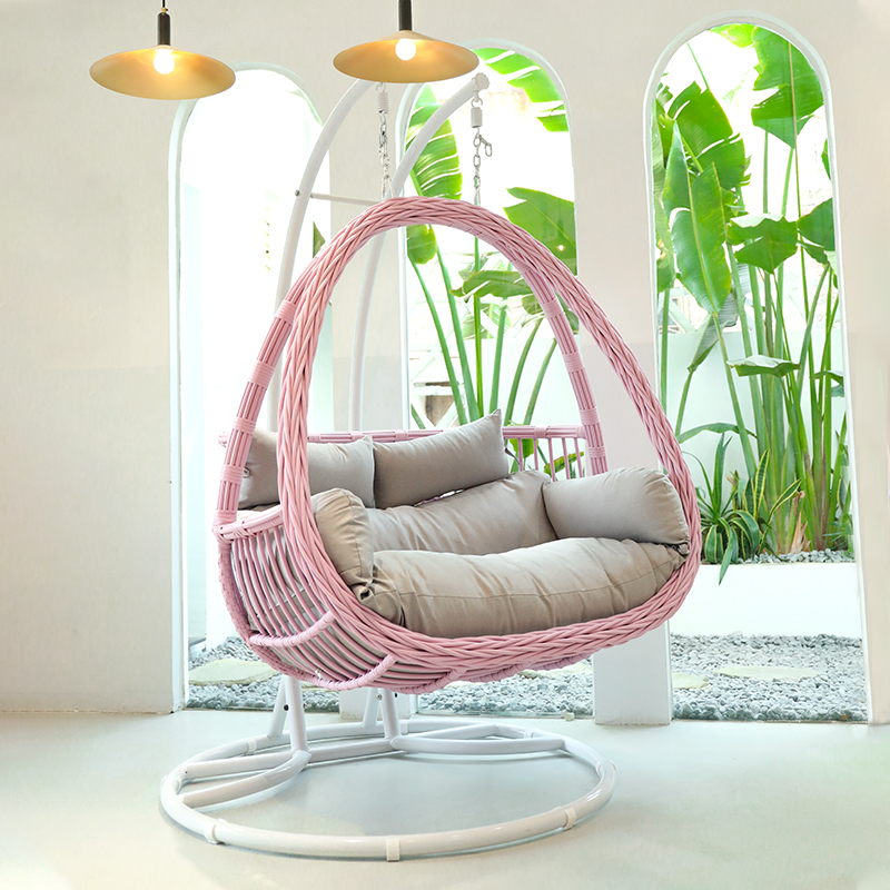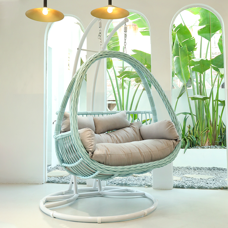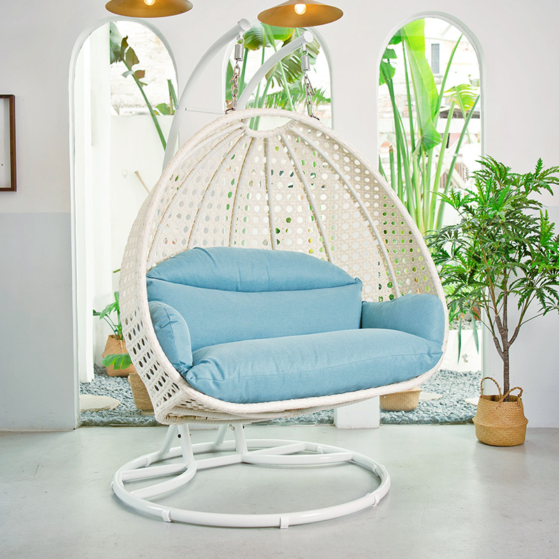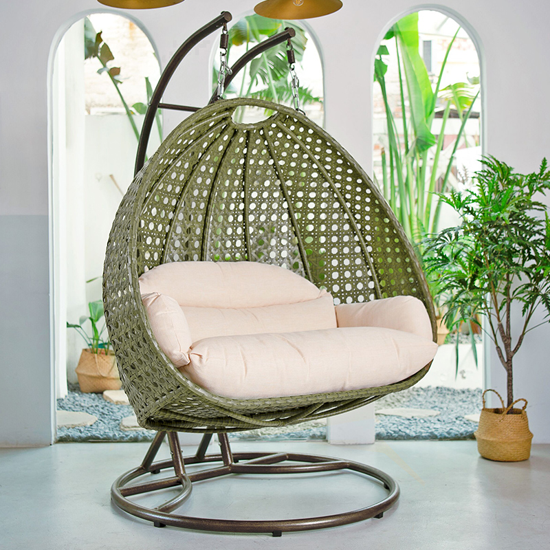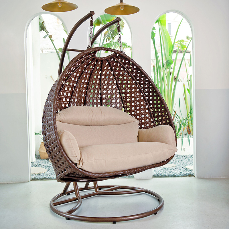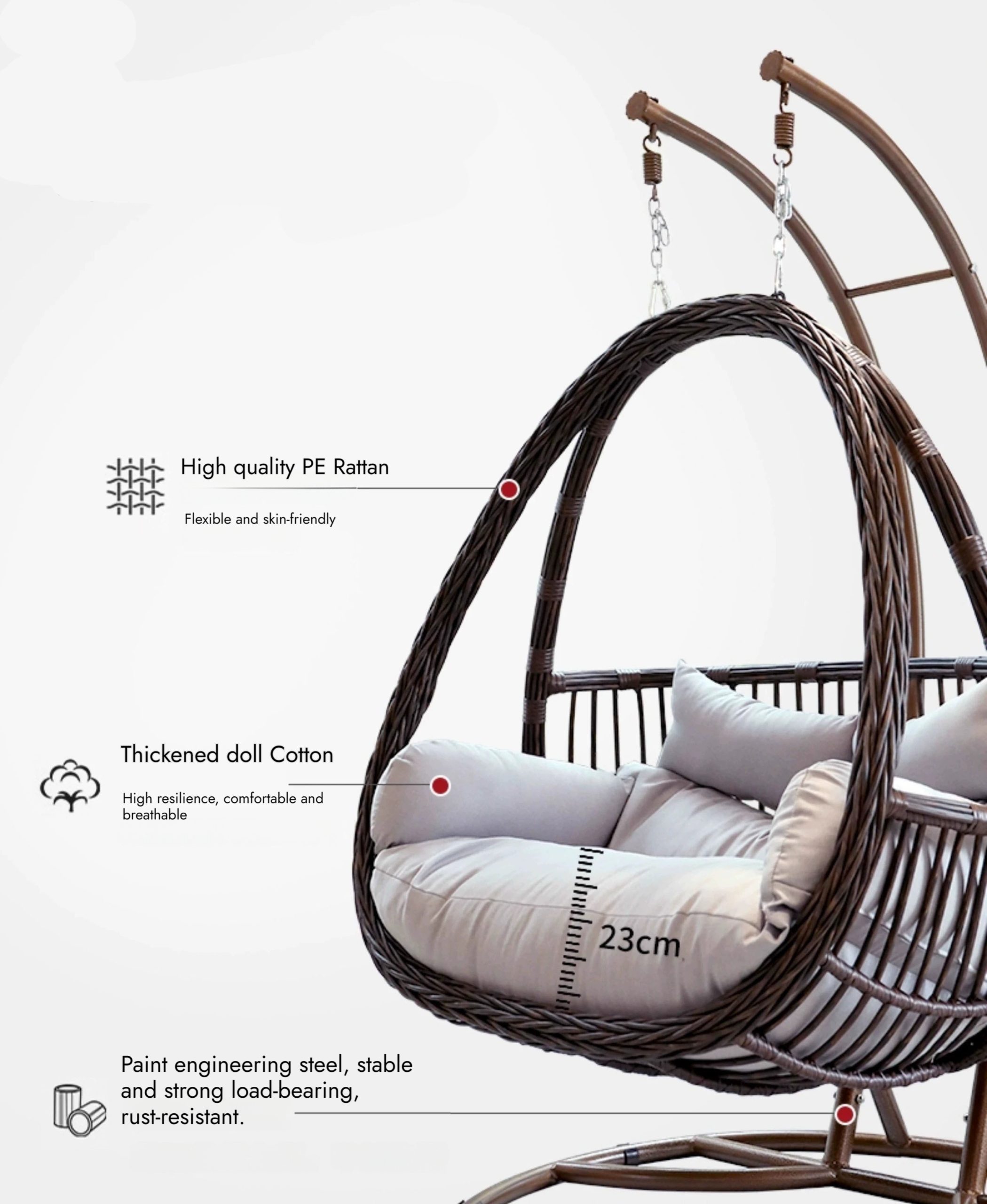 Bunise Rattan Hanging Chair Double Cushion Swing Design Trendy Luxury Style Suitable for Bedrooms, Balconies and Home Use