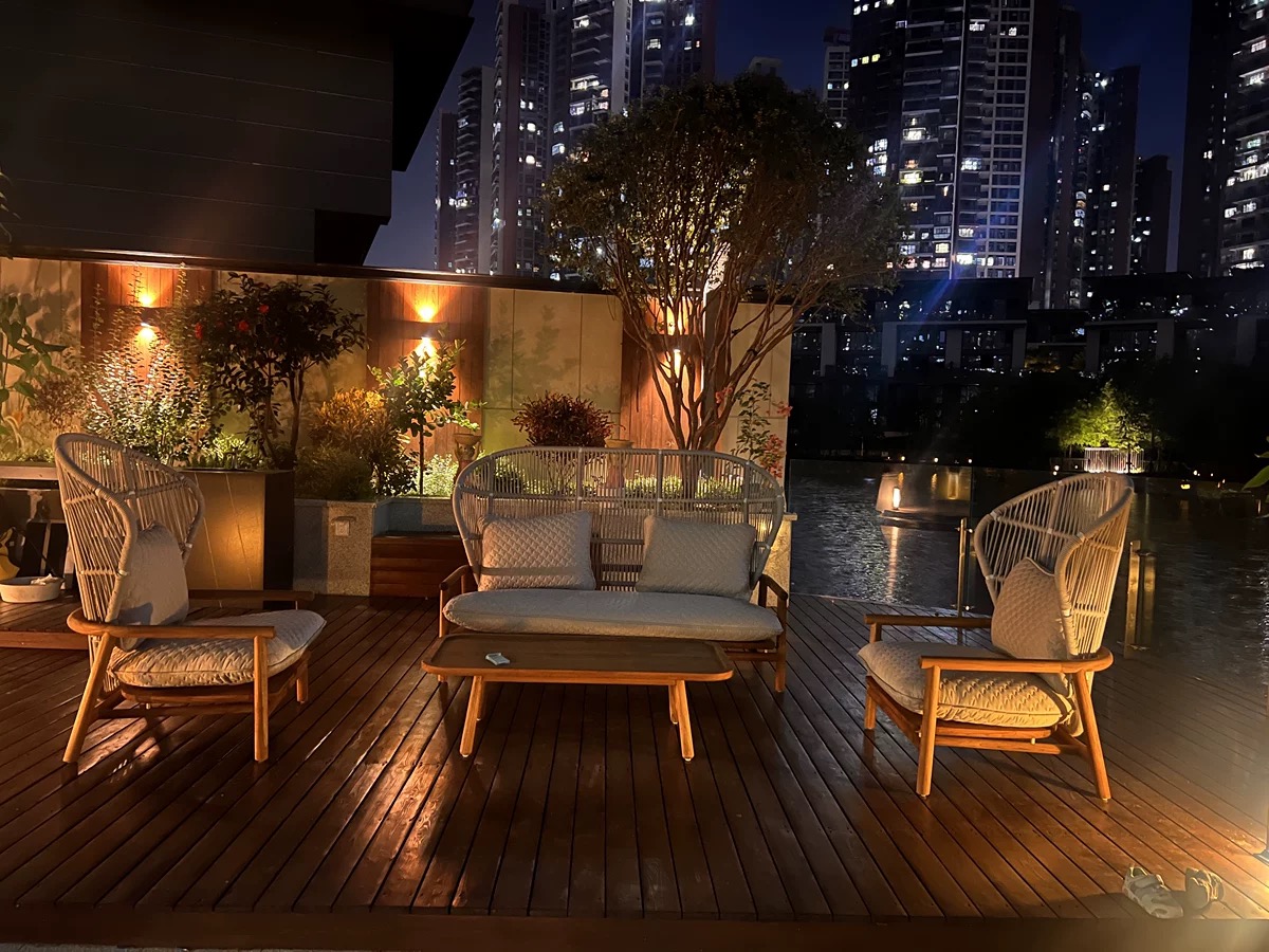 Bunise Real Wood Sofa for Outdoors, Rattan Weave Design, Waterproof and Sun Protection, Modern Luxury Style. Suitable for Gardens, Balconies and Villas