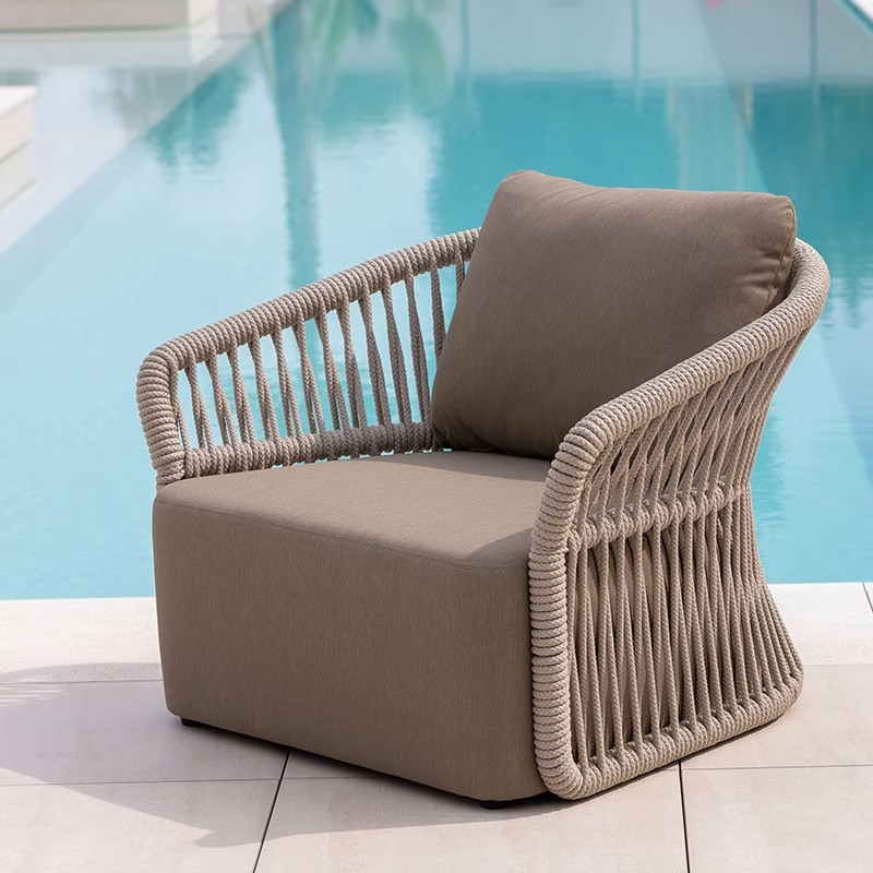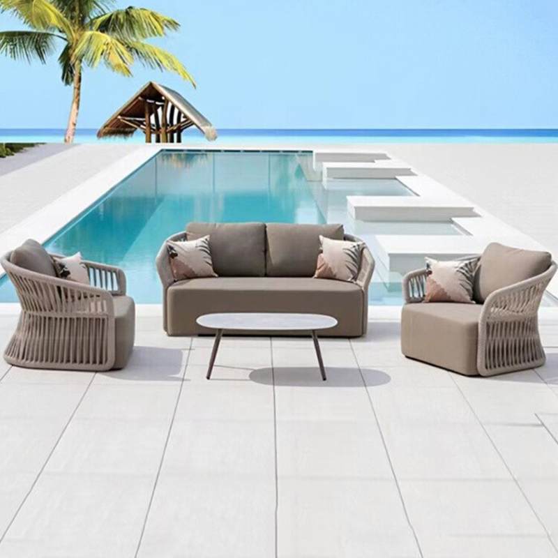 Waterproof UV-Resistant Rope and Rattan Furniture with Coffee Table for Gardens, Balconies, and Villas