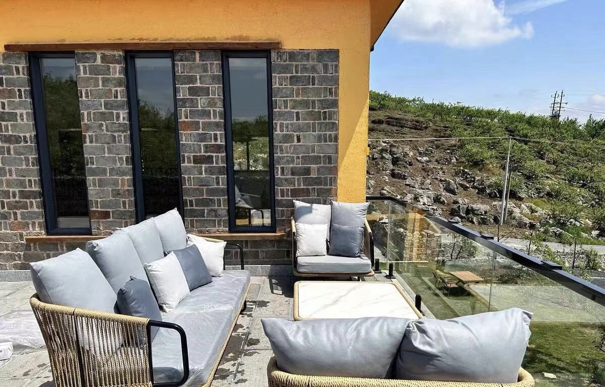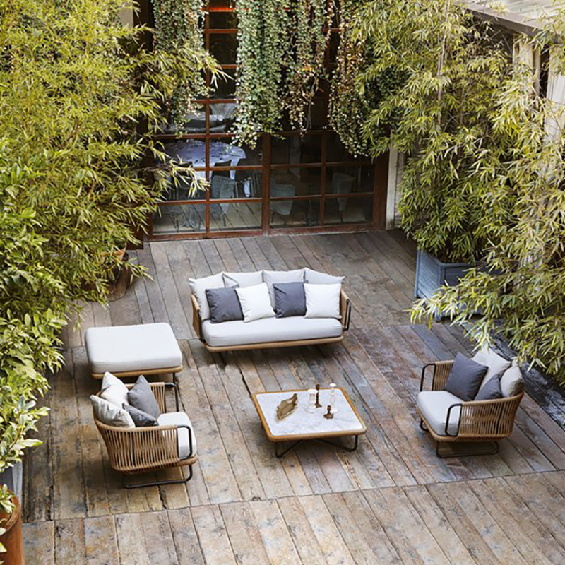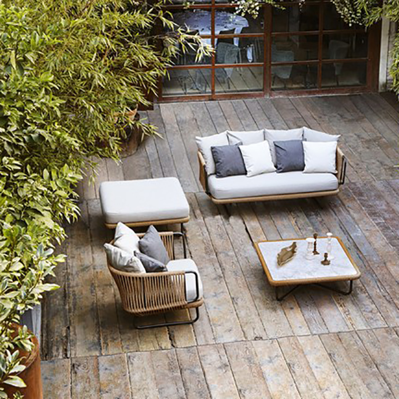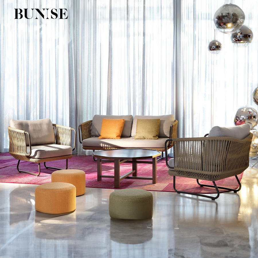 BUNISE Nordic Outdoor Sofa Set P36 – Rope and Woven Rattan Furniture for Gardens, Balconies, and Villas