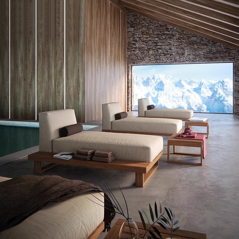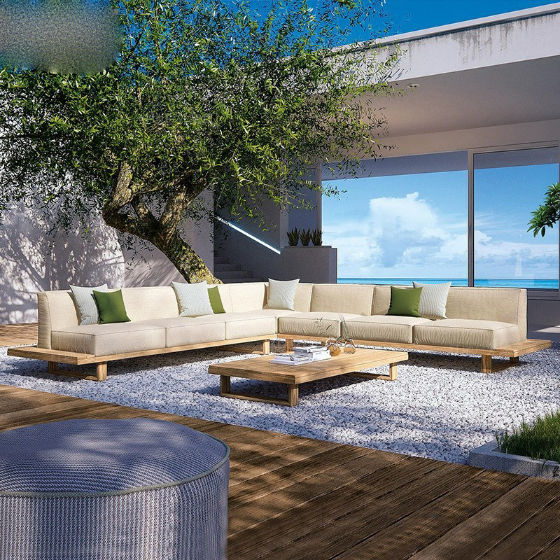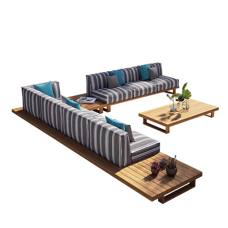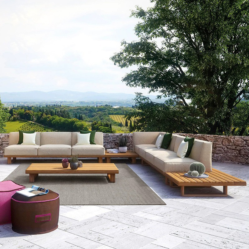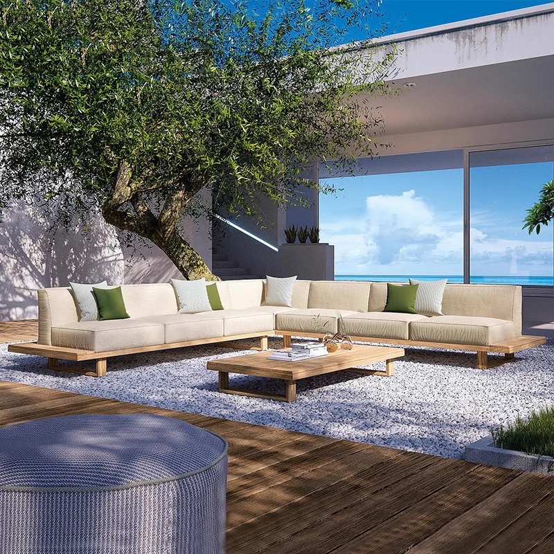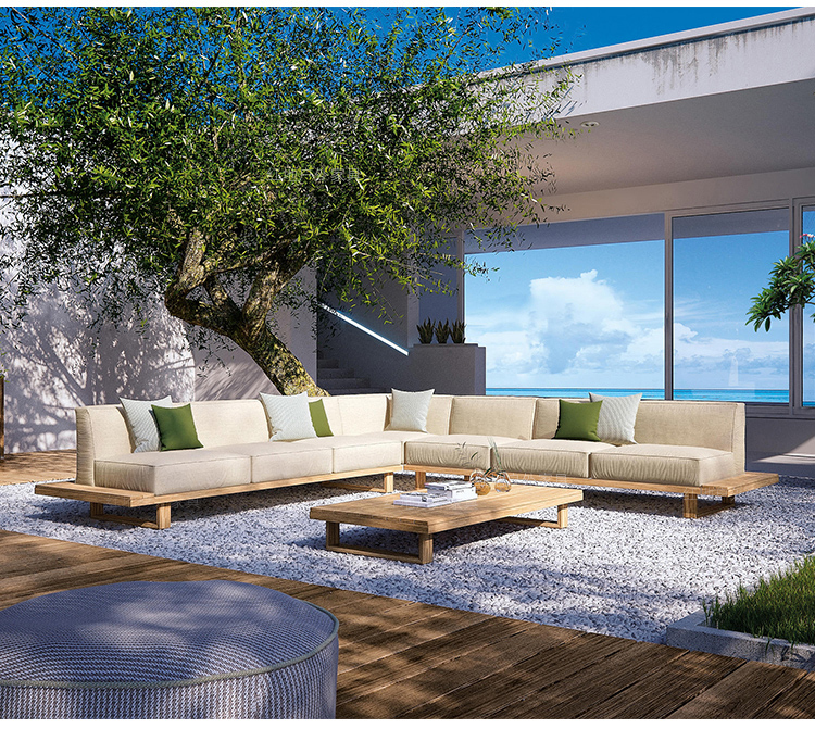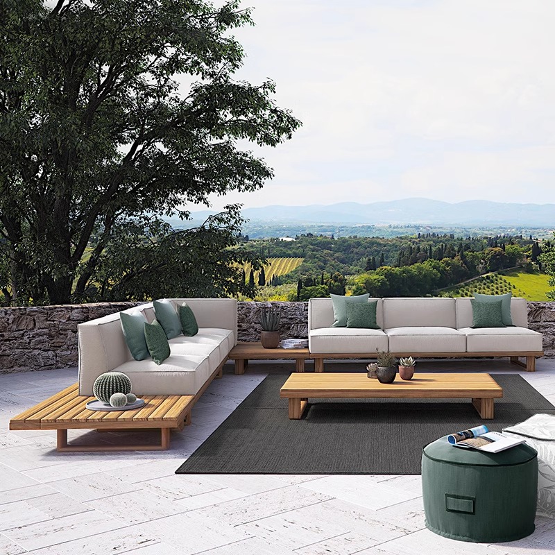 BUNISE Teak Outdoor Sofa P39 – Weather-Resistant Solid Wood Furniture for Villas, Patios, and Gardens