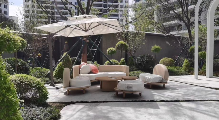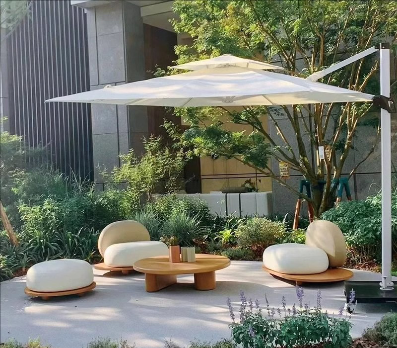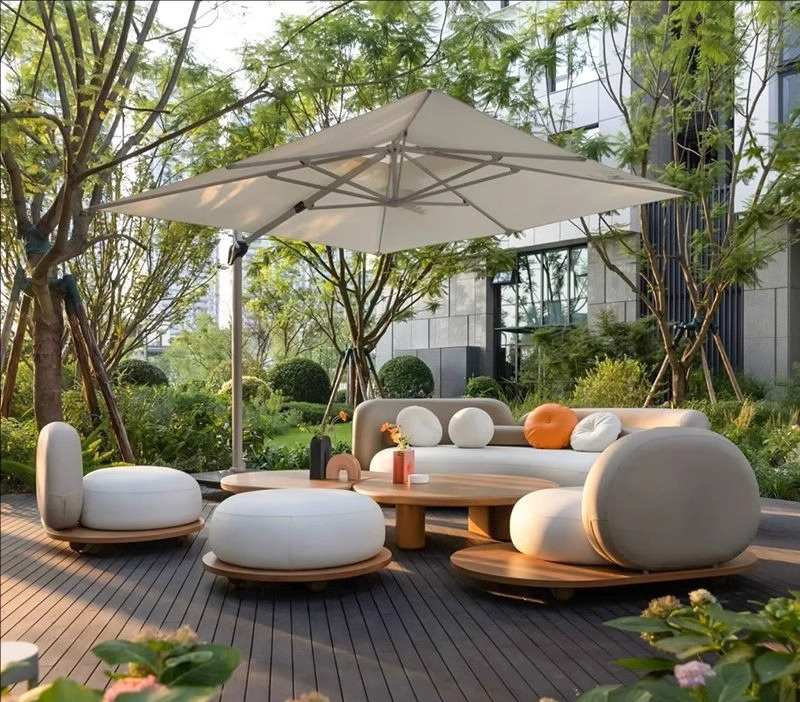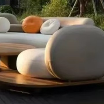 Teak Outdoor Lounge Set – Round Solid Wood Garden Sofa for Villa & Patio