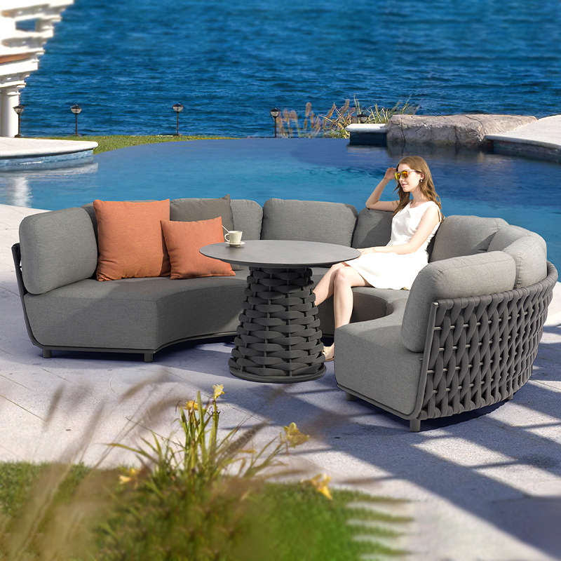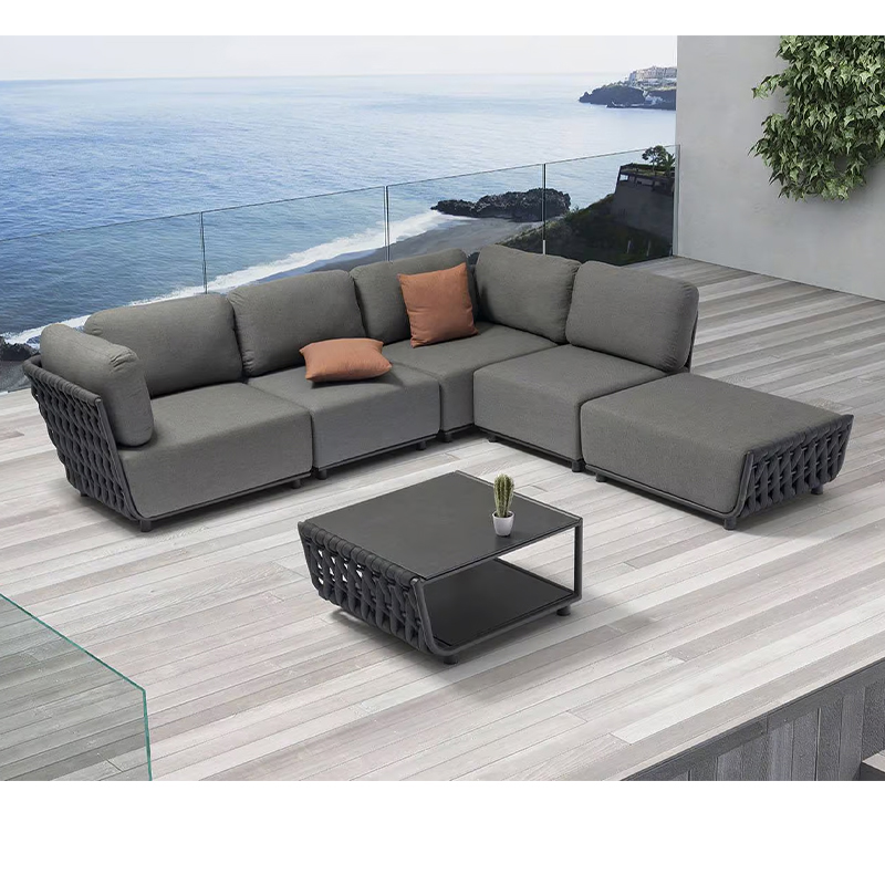 Luxury Outdoor Sofa and Coffee Table Set, Wicker Material, Waterproof and Sunproof, for Garden, Balcony, Villa