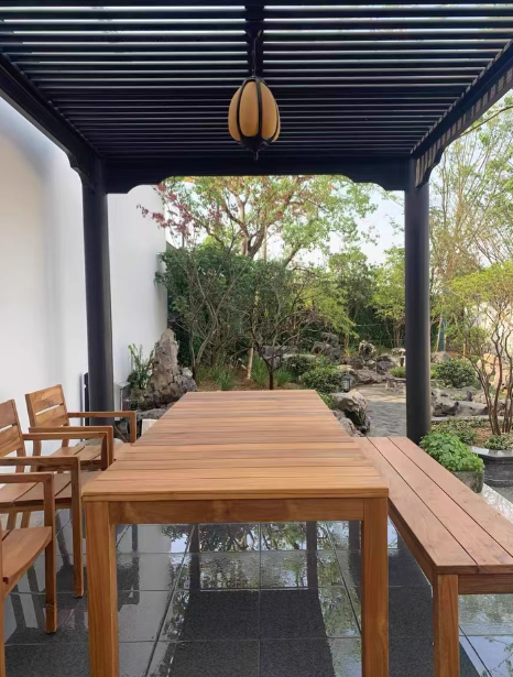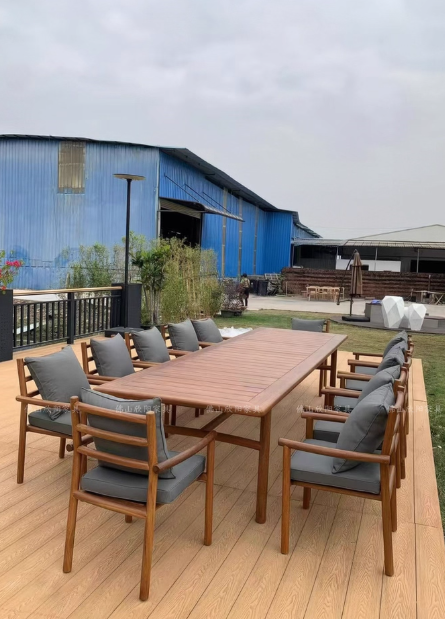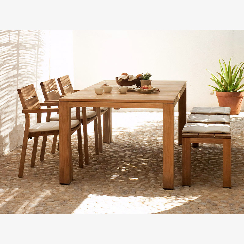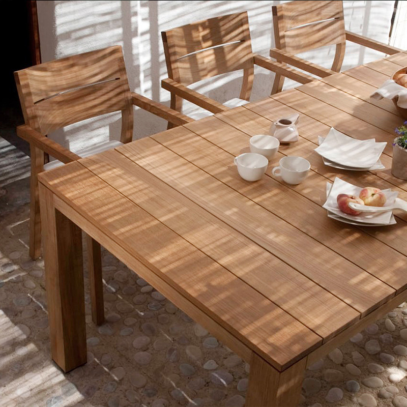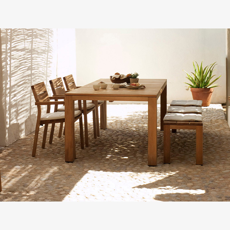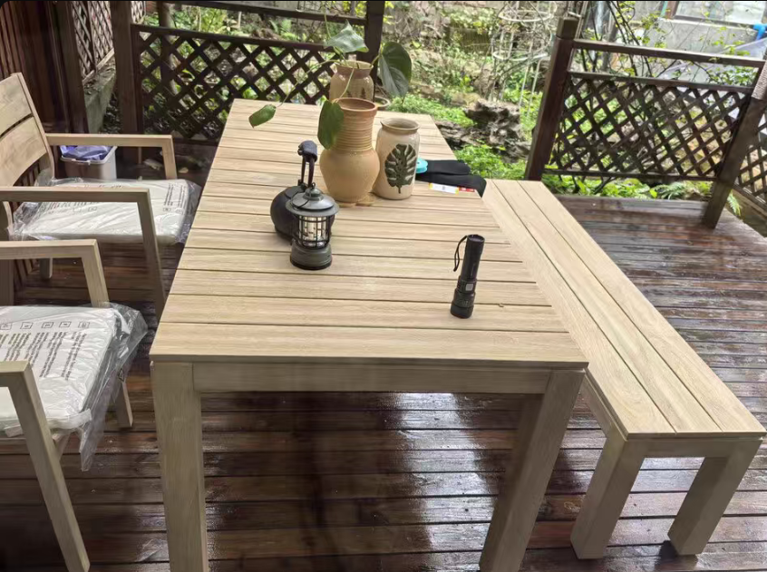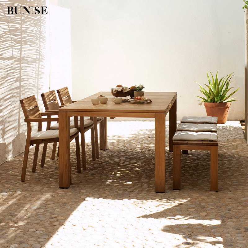 Nordic Style Outdoor Table and Chairs Set, Teak Wood, for Garden Terrace Living Room
