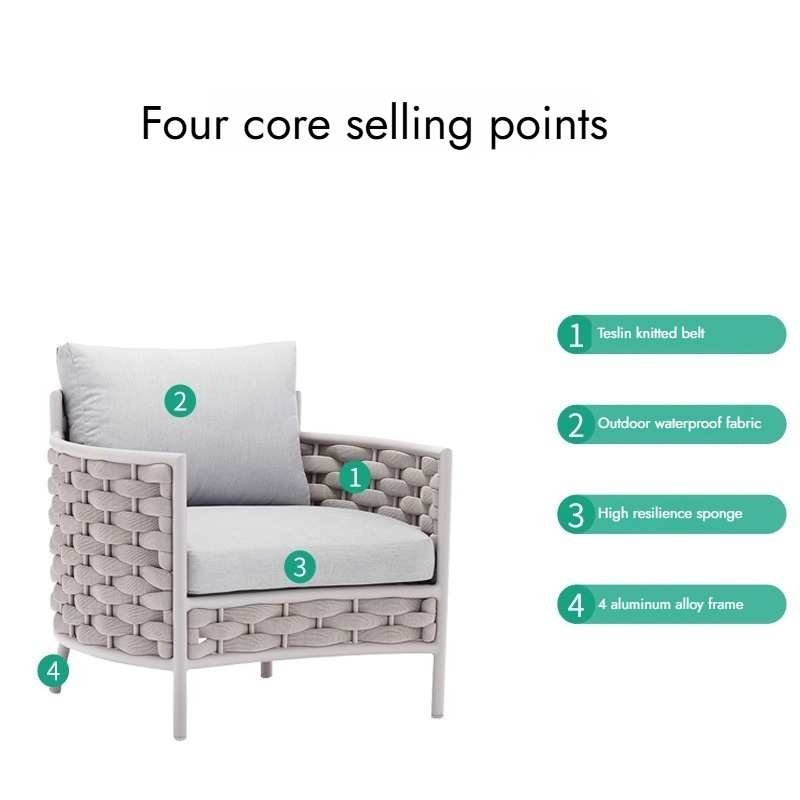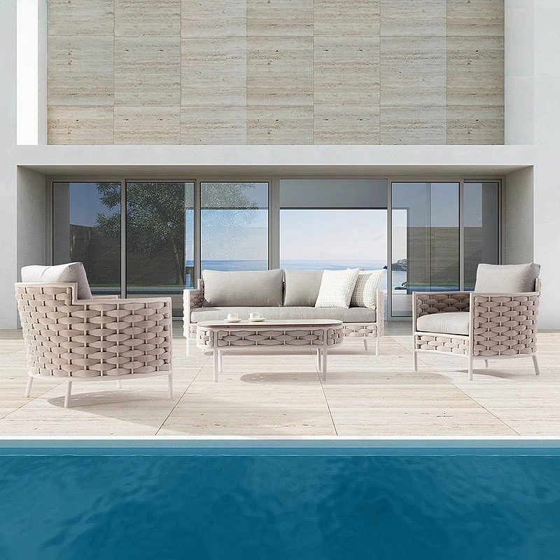 Nordic Style Outdoor Wicker Sofa Set for Villa Hotel Garden Terrace Waterproof and Sunproof