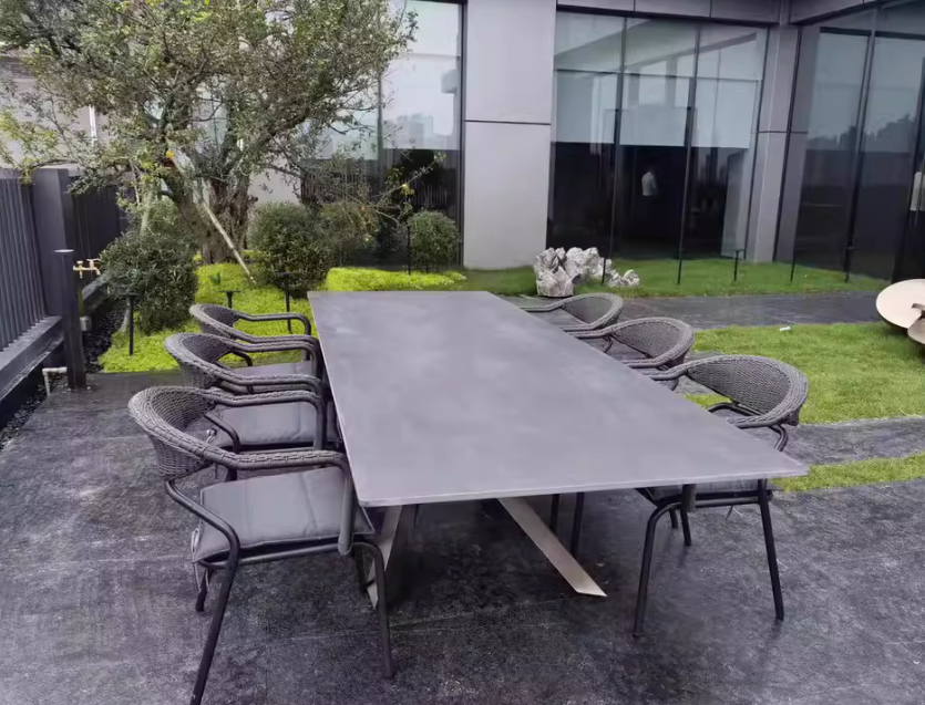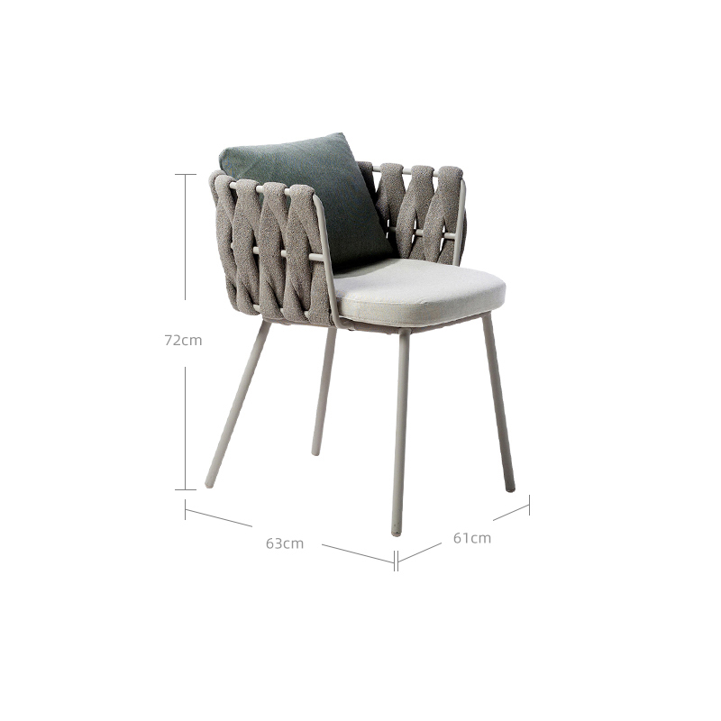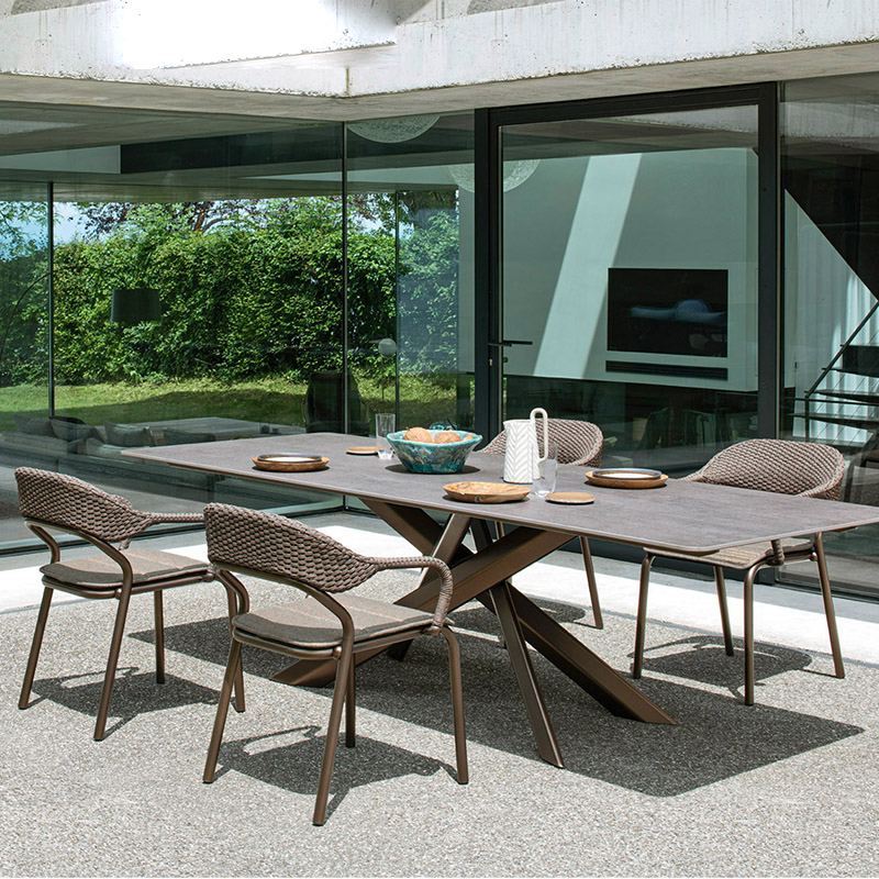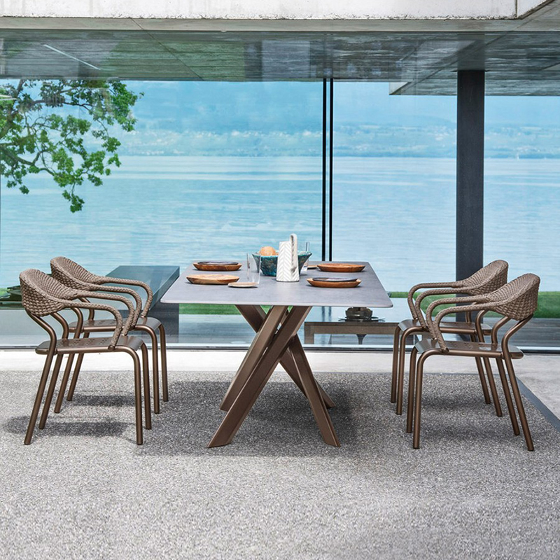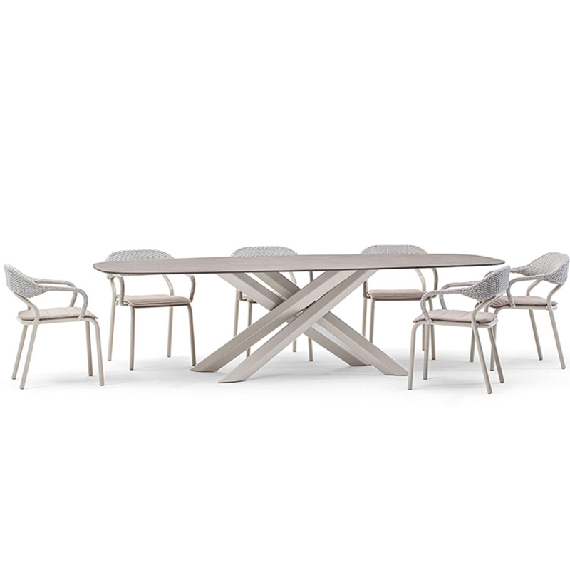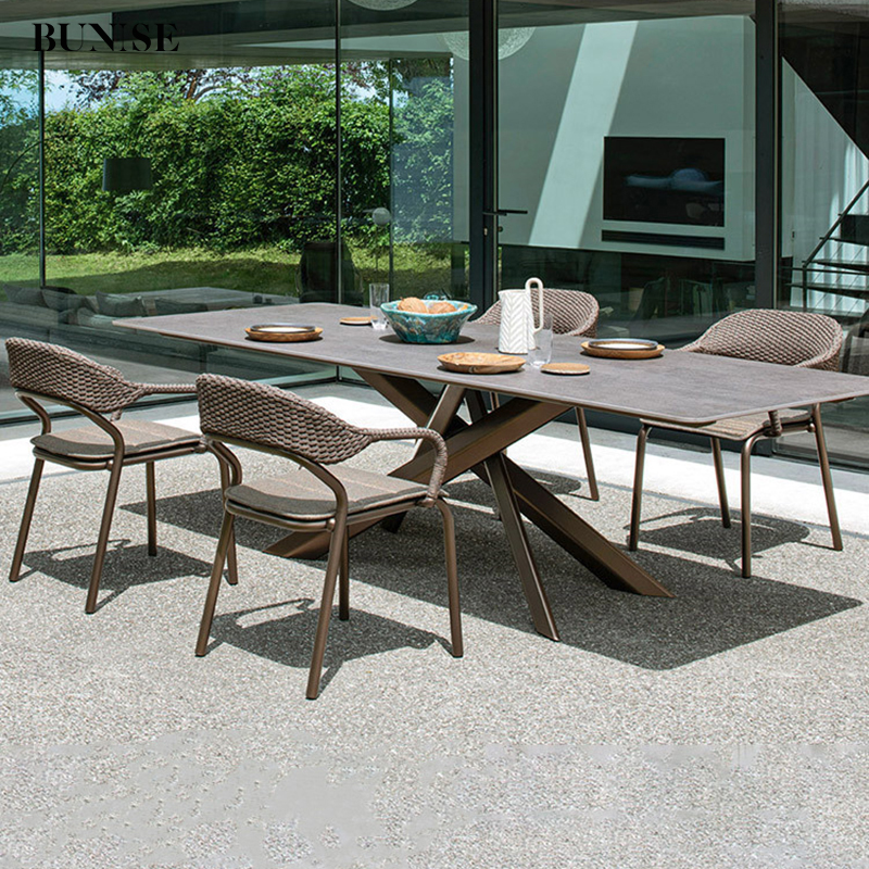 Outdoor Aluminum and Wicker Chair Set with Stainless Steel Dining Table for Villa Hotel Terrace Modern Style