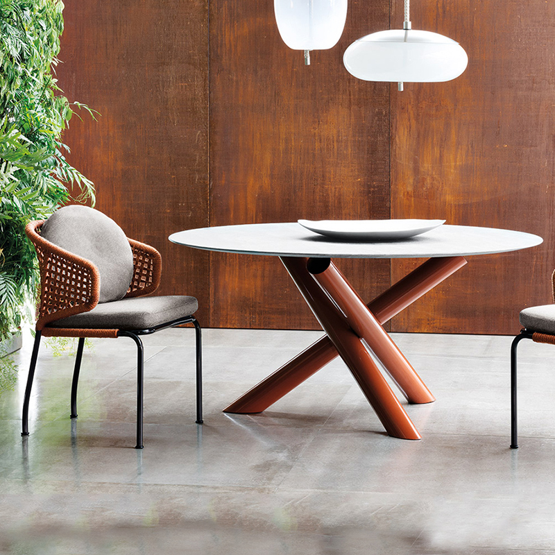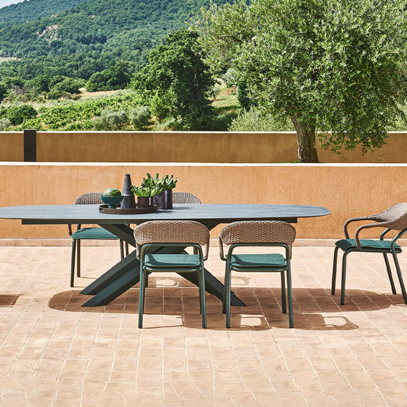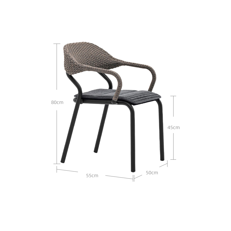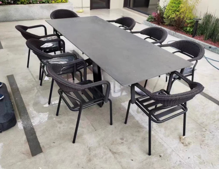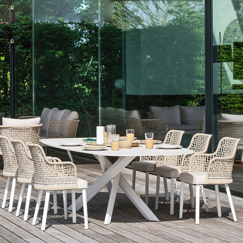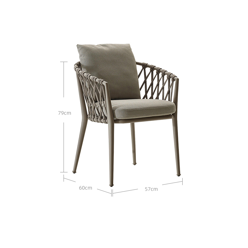 Outdoor Aluminum and Wicker Chair Set with Stainless Steel Dining Table for Villa Hotel Terrace Modern Style