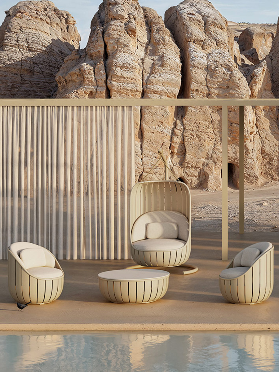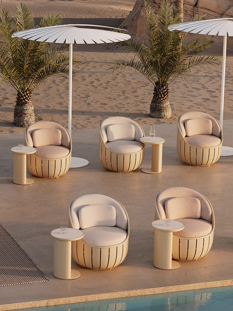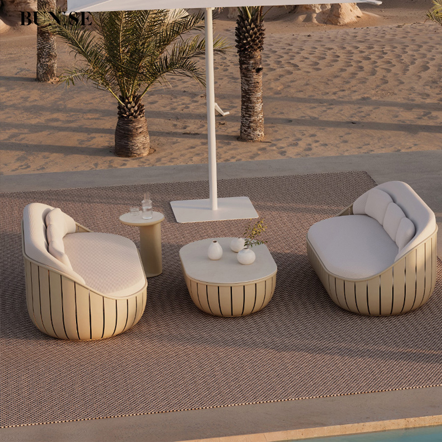 Outdoor Aluminum Sofa Set for Villa Hotel Guestroom Swimming Pool Terrace Waterproof Sunproof Modern Style