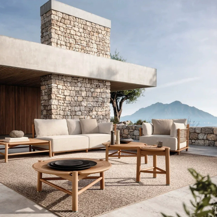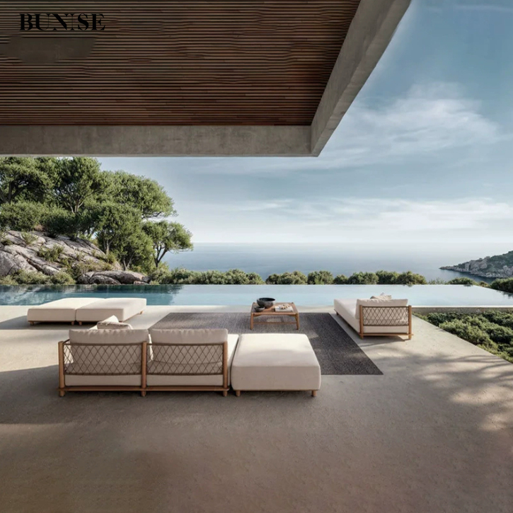 Outdoor Teak Wood Sofa Set for Garden Villa Terrace Waterproof Sunproof Durable Material