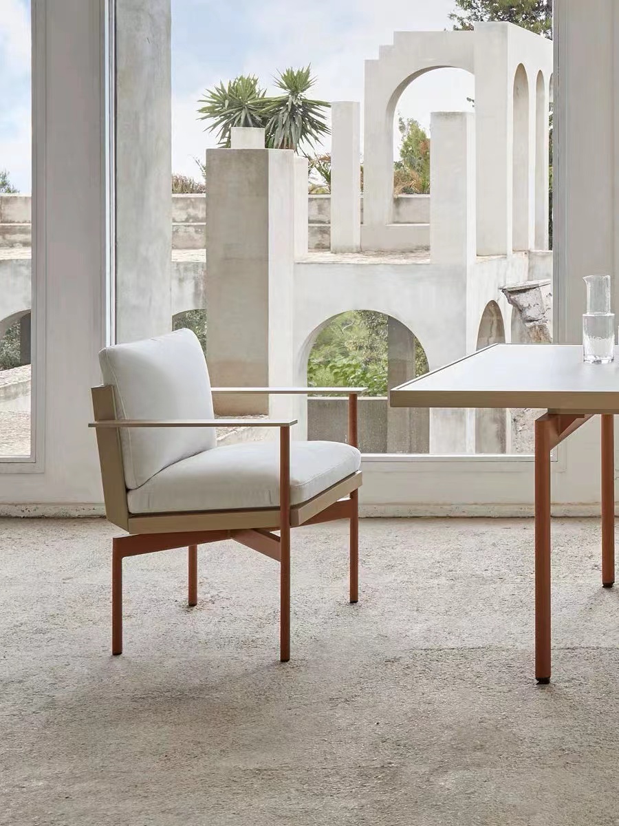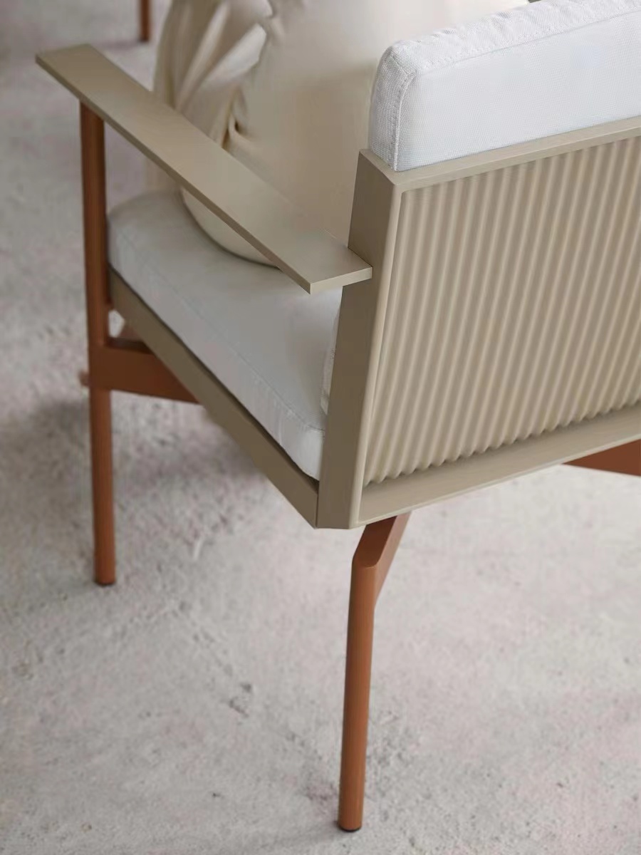 Single Sofa Chair Vintage Wabi Sabi Style Solid Wood Frame with Mohair Upholstery Designer Piece for Living Room and Balcony