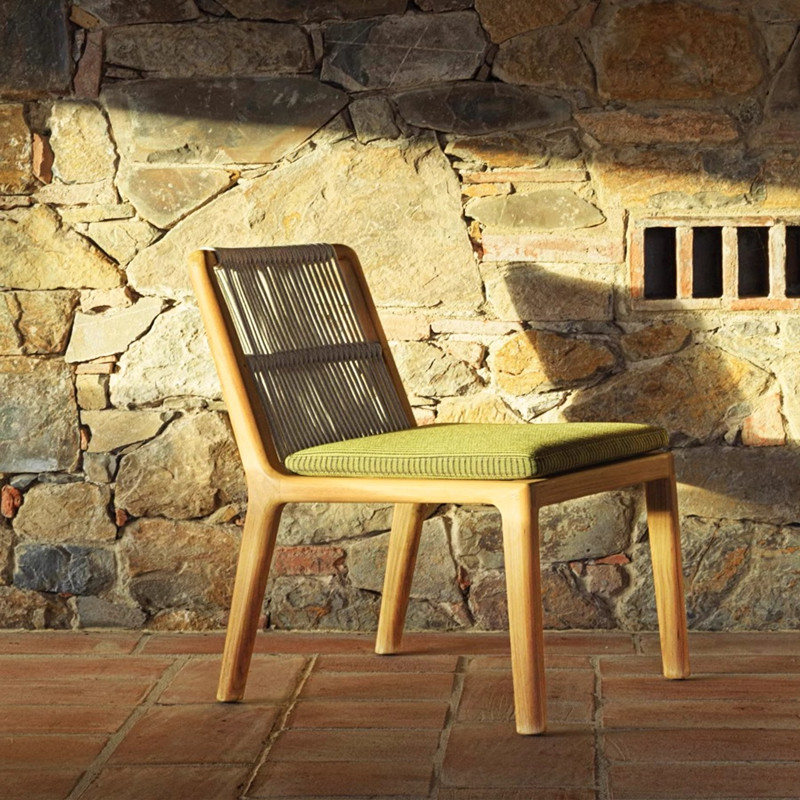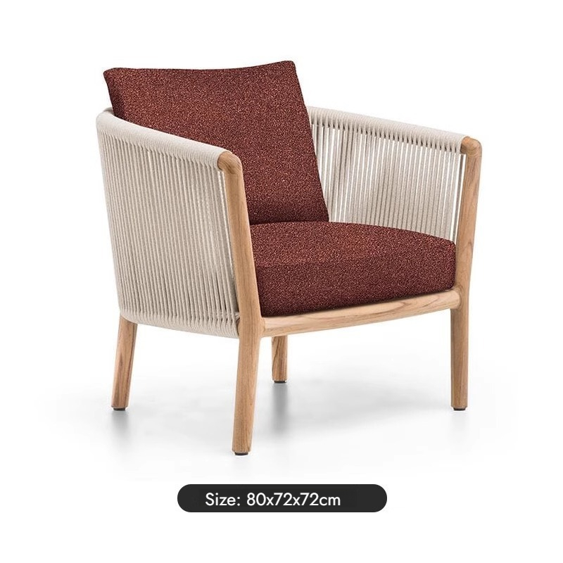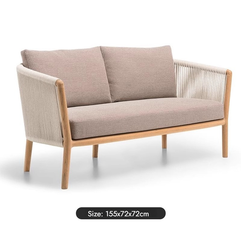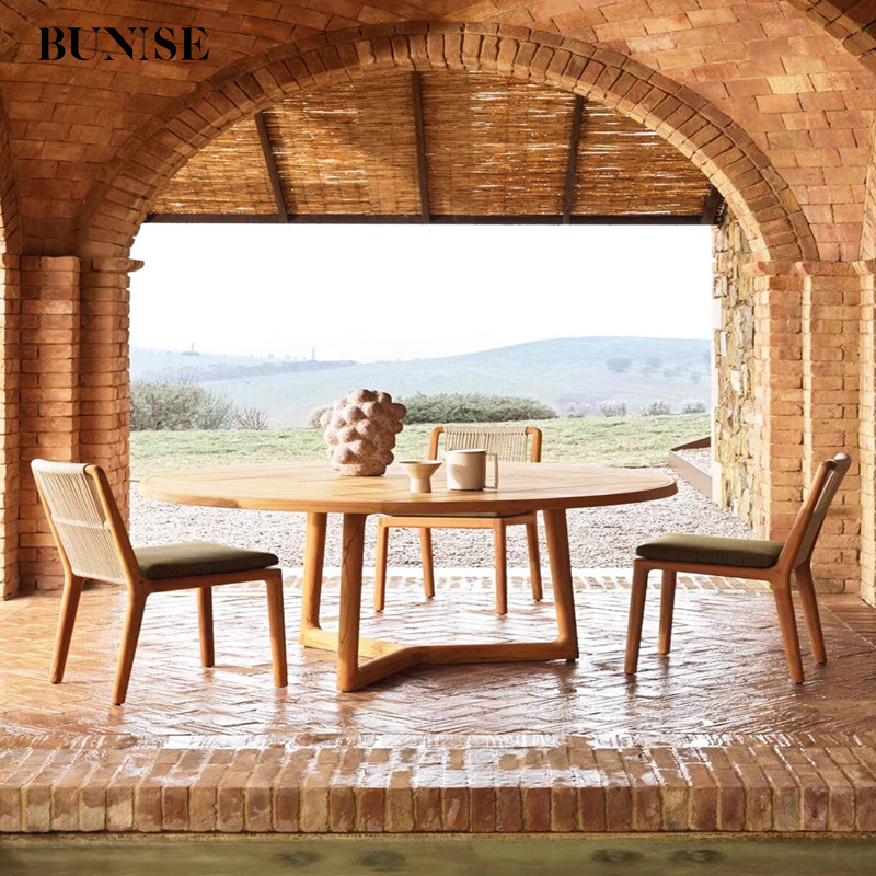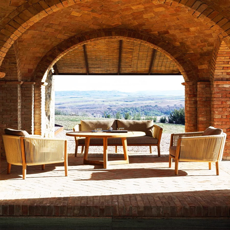 Outdoor Wicker Sofa and Dining Table Set with Teak Wood for Villa Hotel Garden Terrace Luxury Style