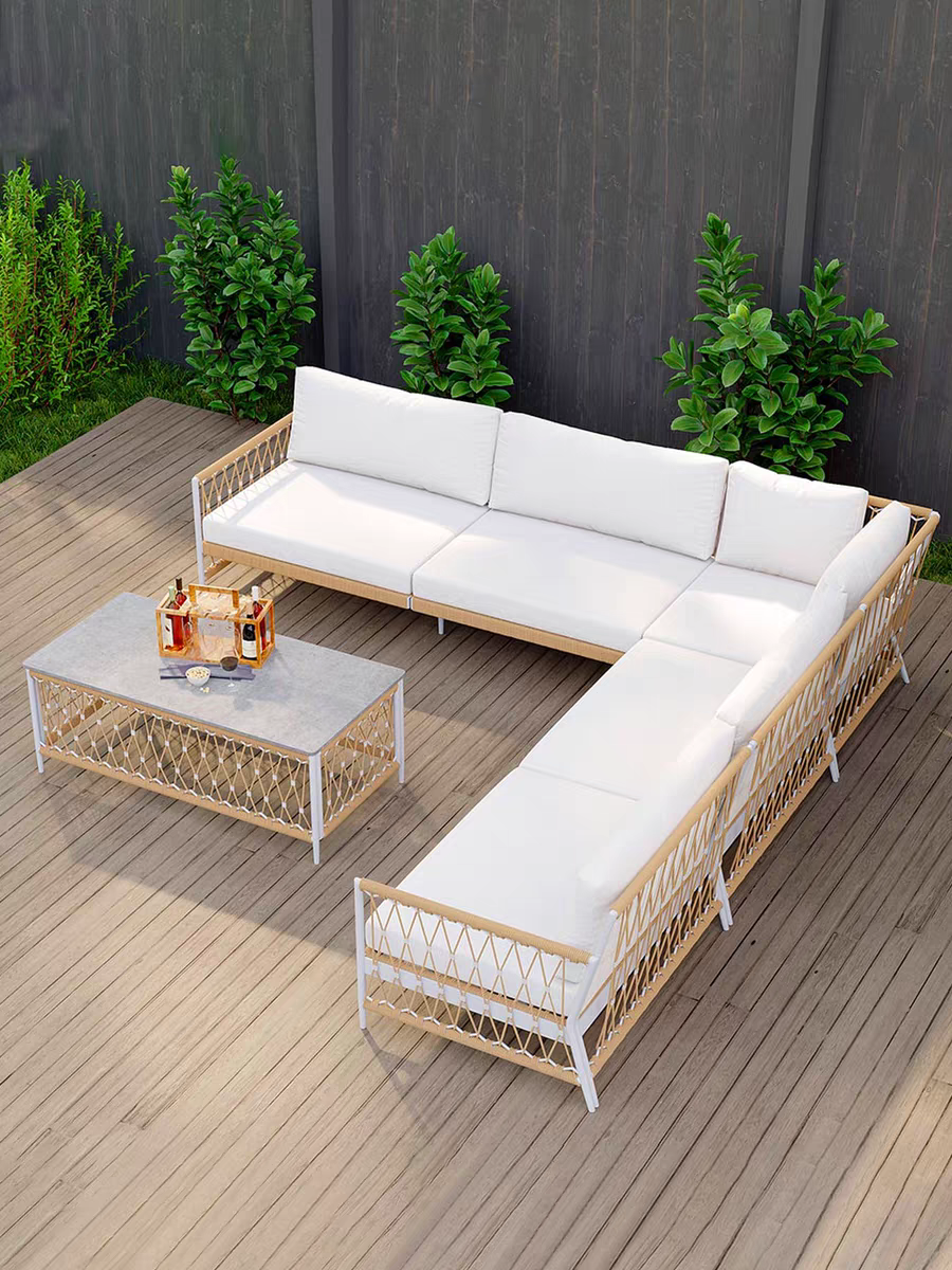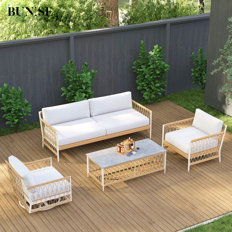 Outdoor Rattan Sofa Set Rotatable Waterproof Sunproof for Patio Garden Villa or Balcony Modern Design
