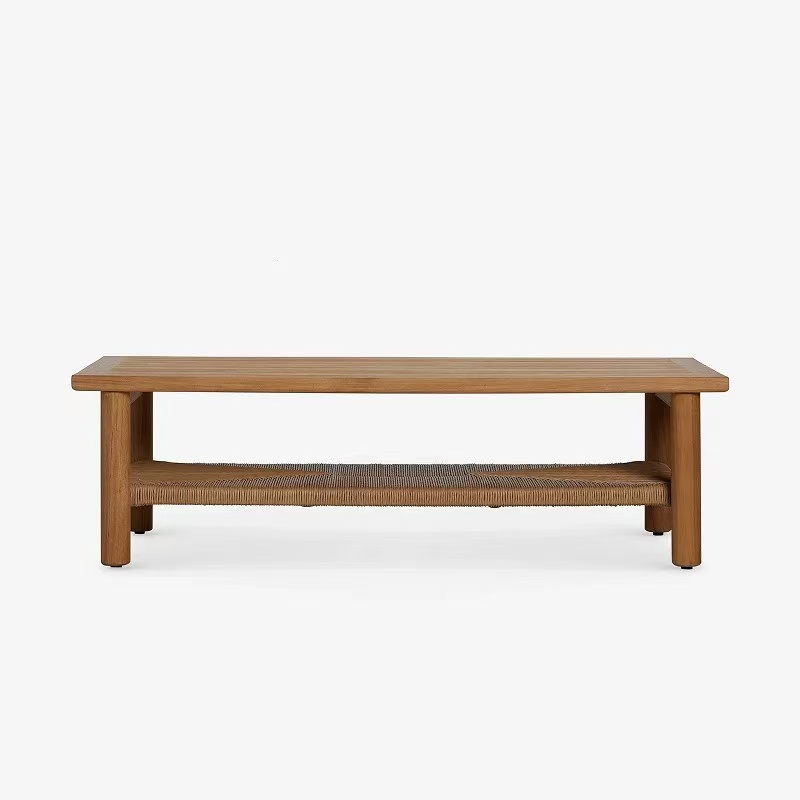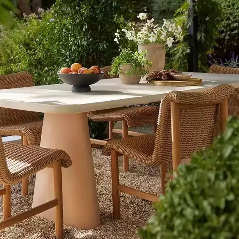 Outdoor Solid Wood and Rattan Sofa Set with Table and Chairs for Garden Balcony and Patio Designer Style Ideal for Homestay and Hotel