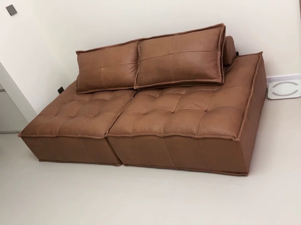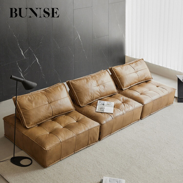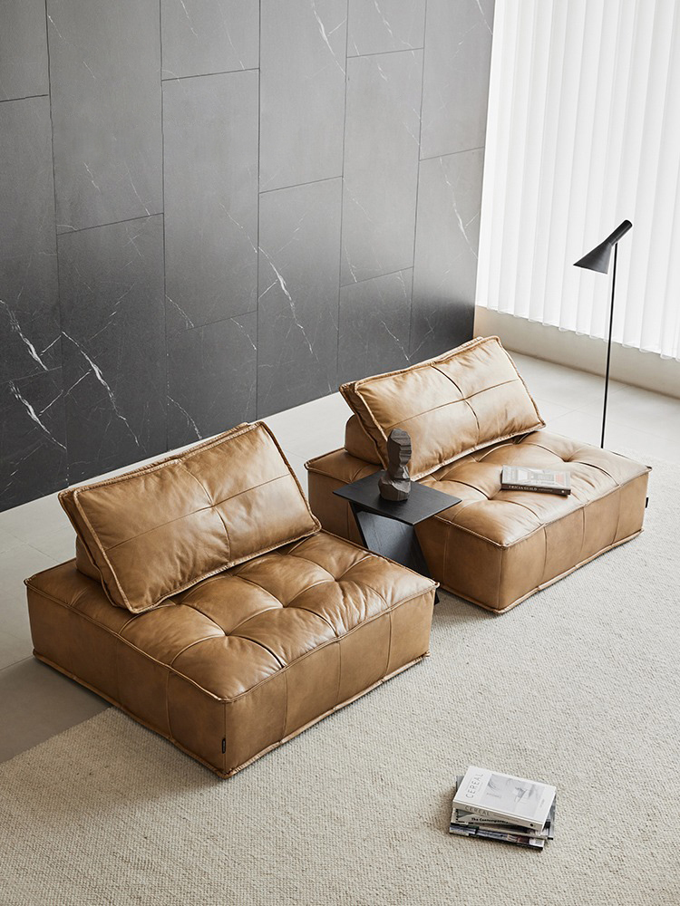 Bunise Genuine Leather Sofa, Tofu Block Shape, Modular Style, Single Chair That Can Be Assembled. Leather Color Can Be Chosen. Suitable for Living Rooms and Small Condos