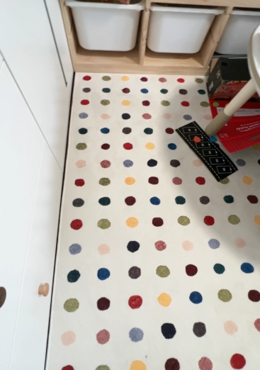 The soft pile protects little knees and the dots stimulate my toddler’s imagination. Non-slip backing is a lifesaver!