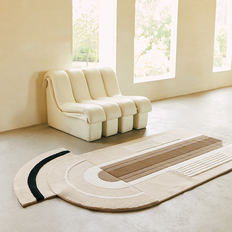 Italian Minimalist Curved Fabric Sofa Cotton Linen With Sintered Stone Elements Wabi Sabi Style Designer Original New Model For All Living Room Sizes Free Nationwide Delivery