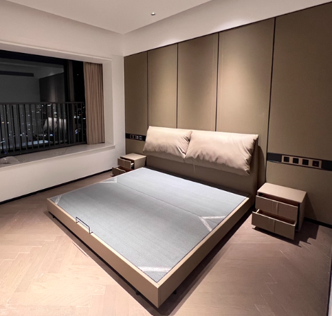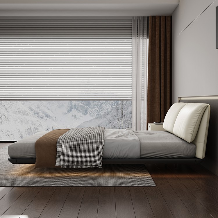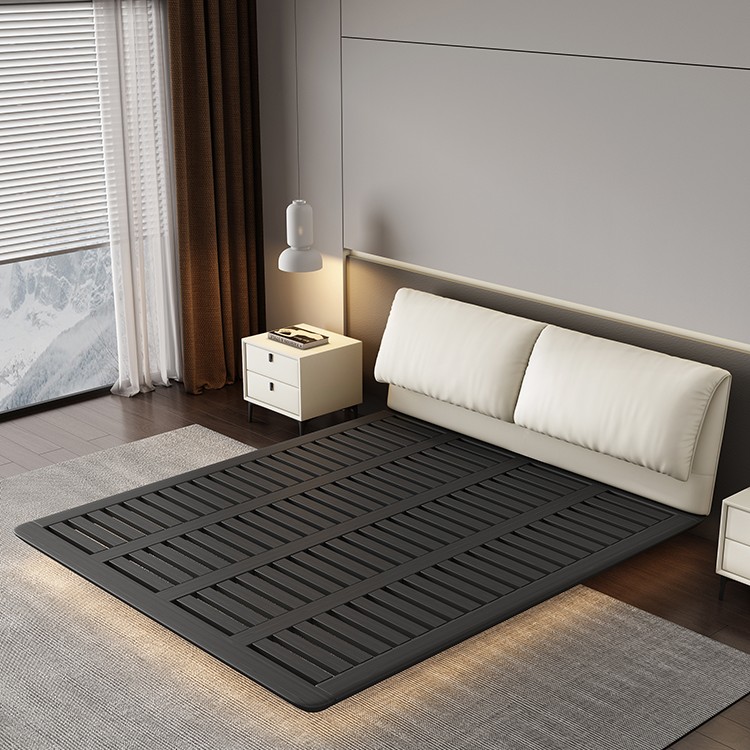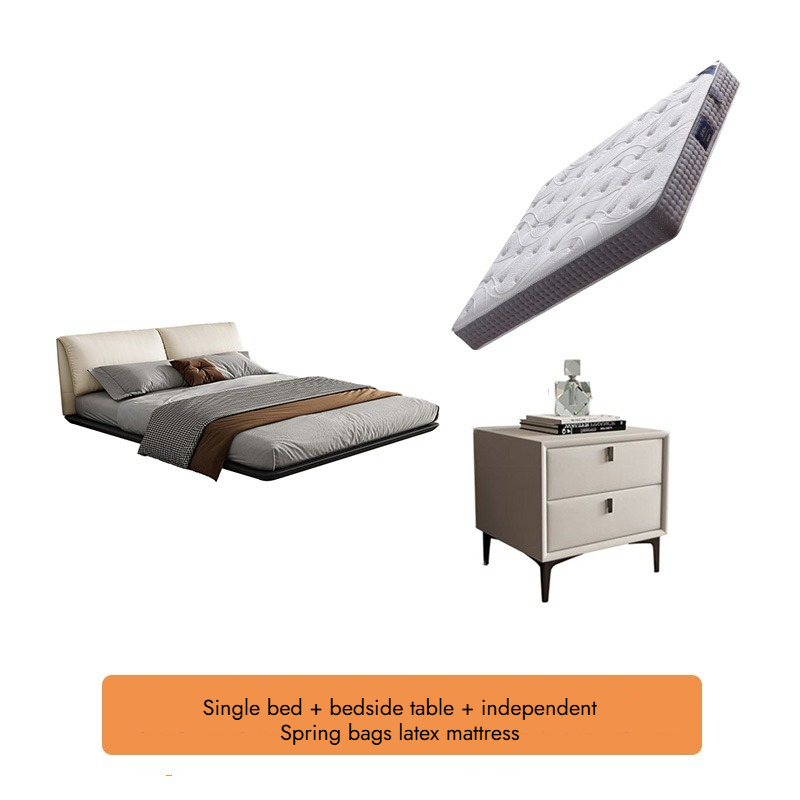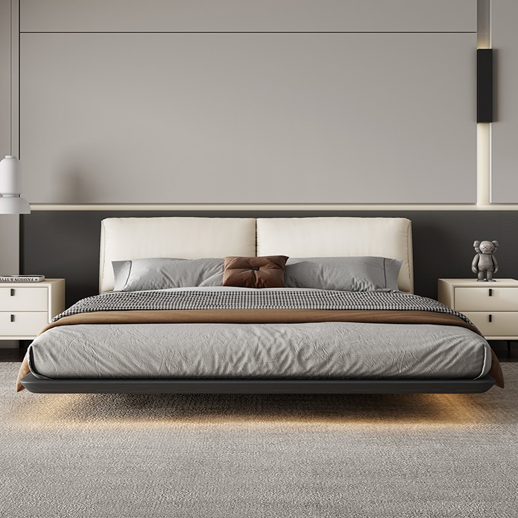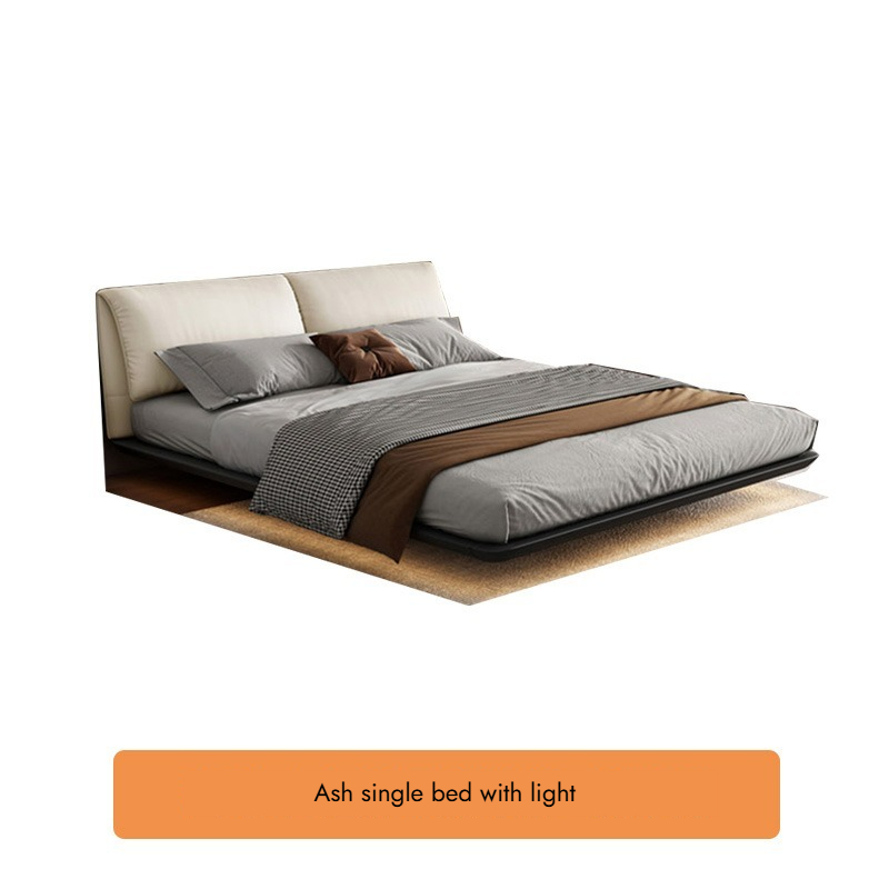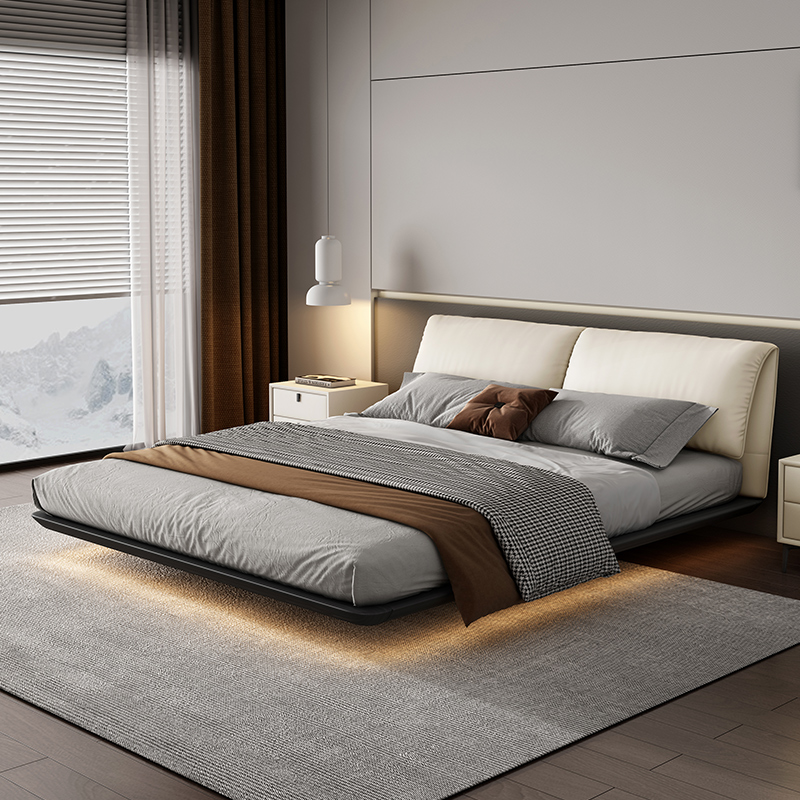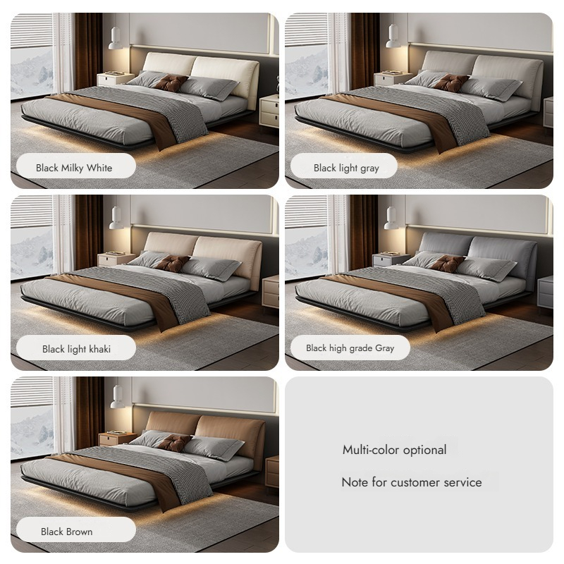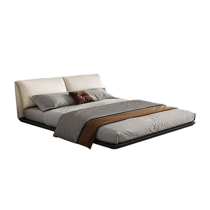 Bunise Cream-Style Fabric Bed, Bread-Shaped Design, Floor-Mounted, Minimalist Modern Style, with Storage Space. Soft Upholstered Real Wood Base, for the Master Bedroom