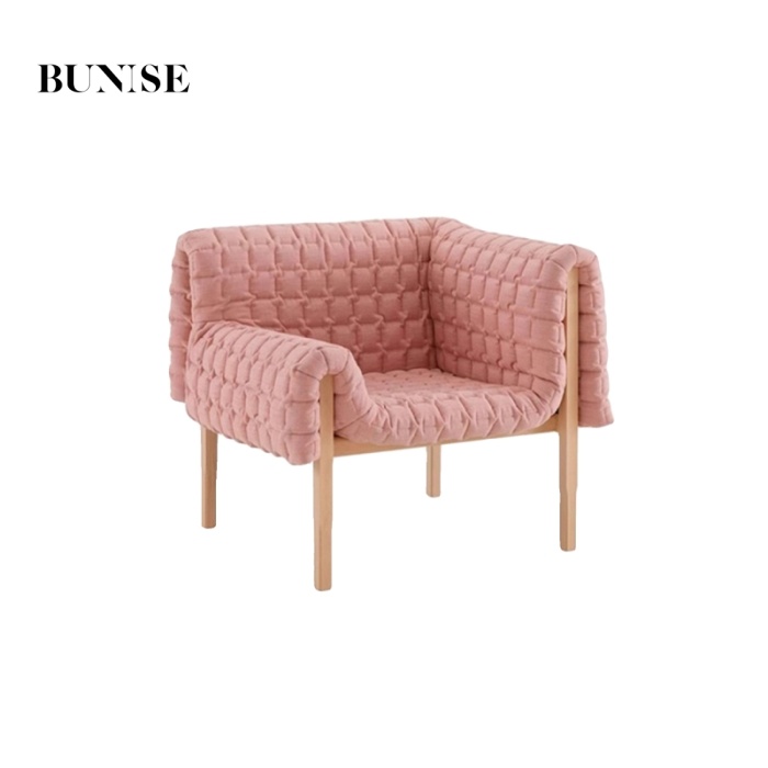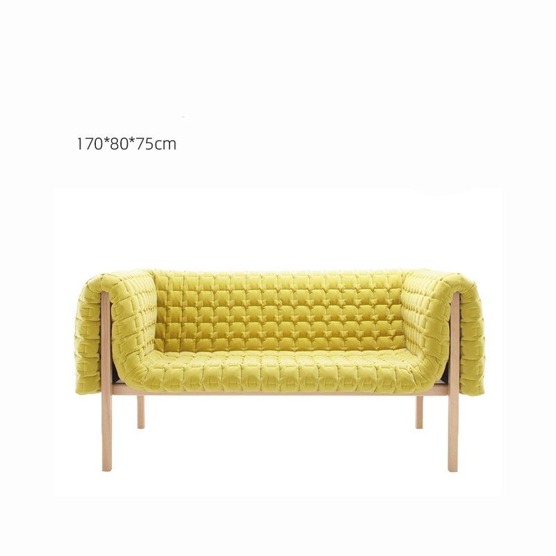 vintage French ruche sofa flannel, ash wood legs living room lounge chair