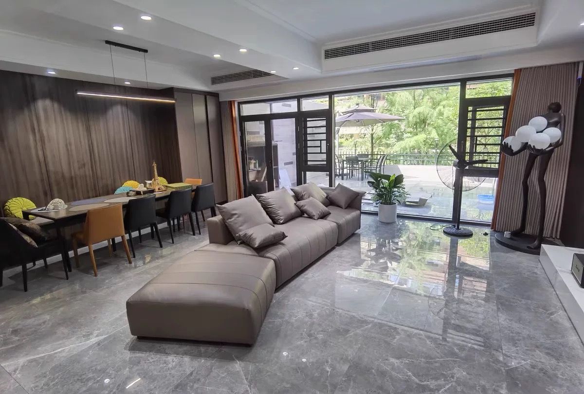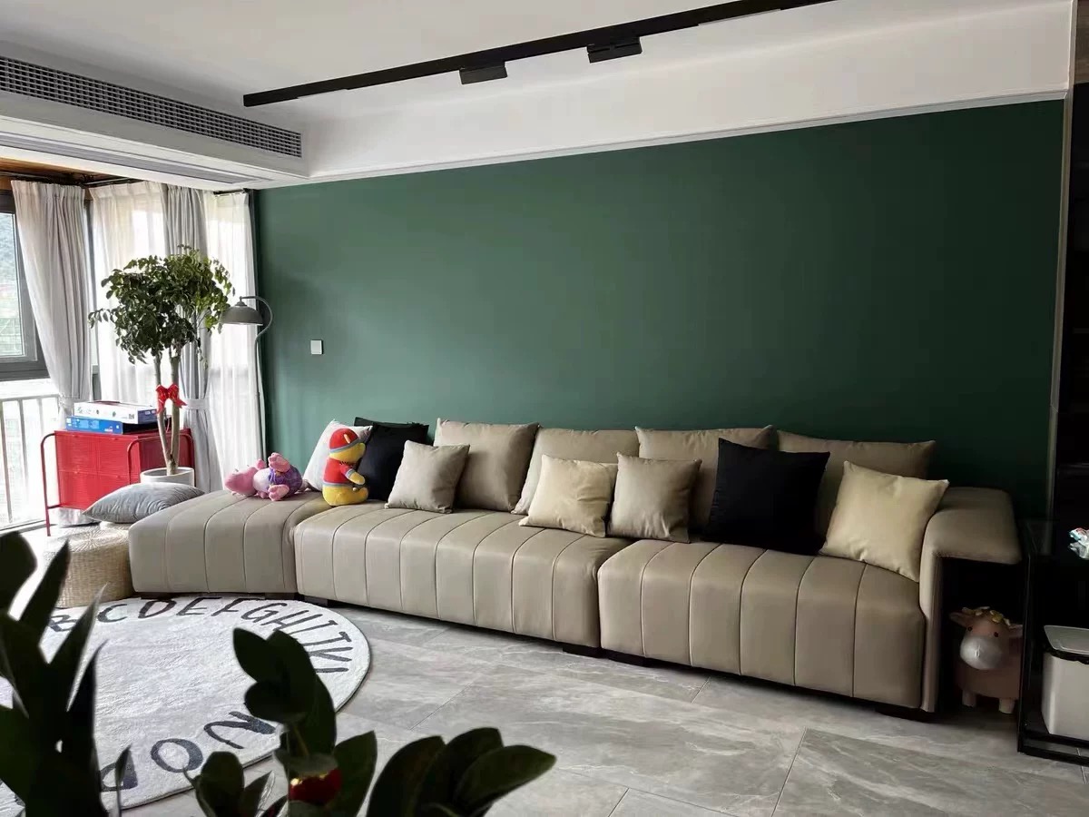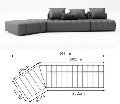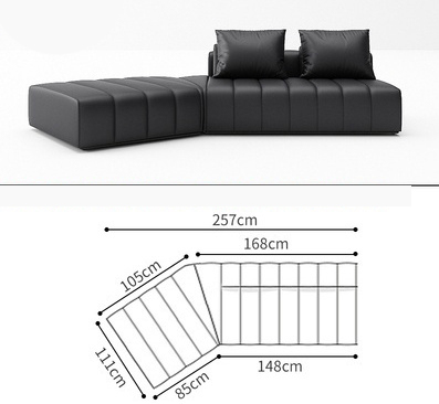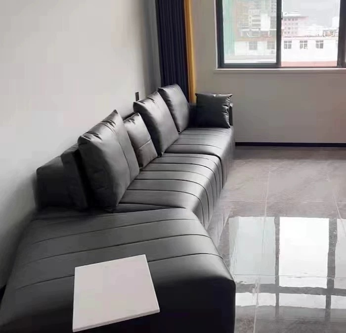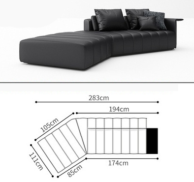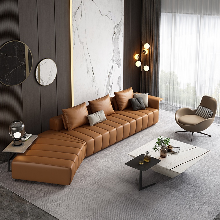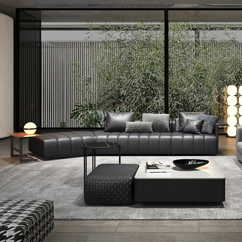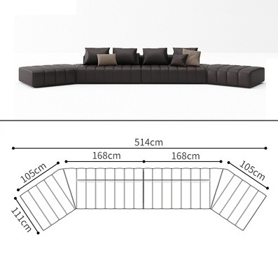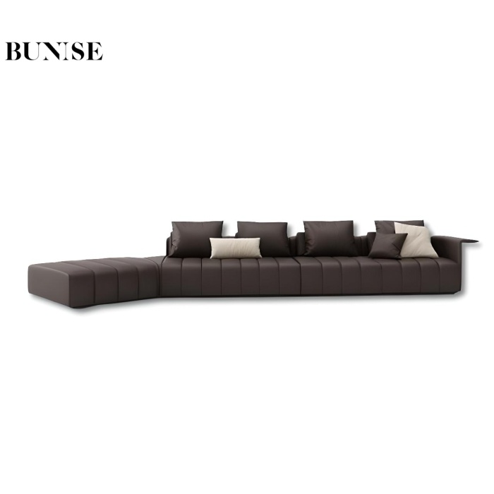 BUNISE leather sofa with removable backrest, minimalist Italian style, extra wide seating depth, villa living room, horizontal hall, large flat floor, modular leather sofa