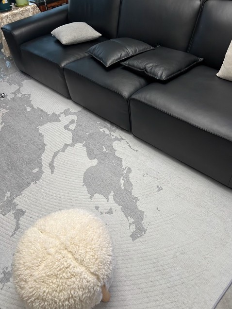 This is a really nice carpet. Its color and pattern are elegant and versatile. The details have a strong textured feel with raised and recessed parts. It doesn’t slip, is thick, and I’m very satisfied with it.