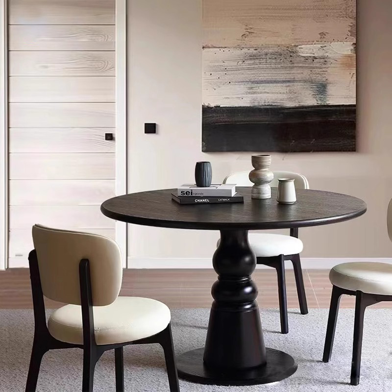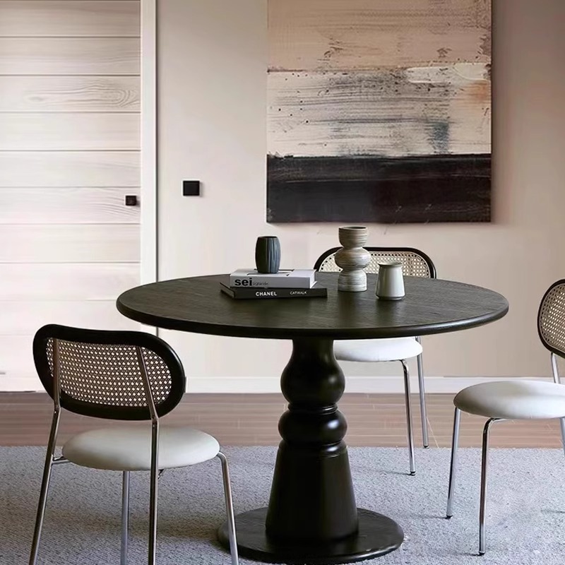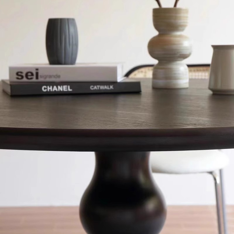French retro oval round table,Ancient solid wood dining table,Round casual coffee table desk Meeting table
