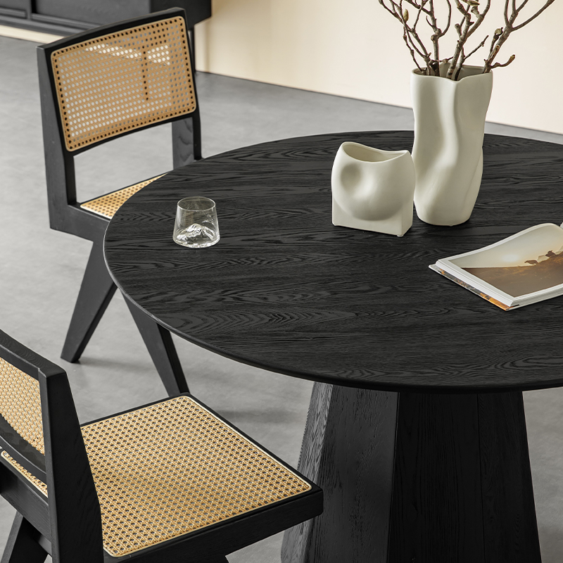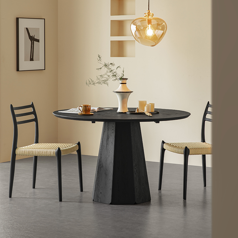 Wabi-sabi round table of solid wood,Black minimalist ash round dining table