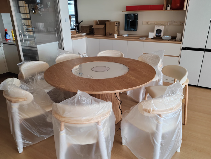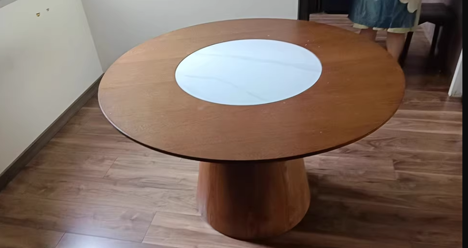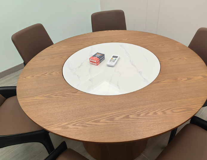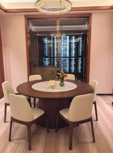 Nordic solid wood large round table,Round ashwood dining table for the home,Simple built-in table with turntable