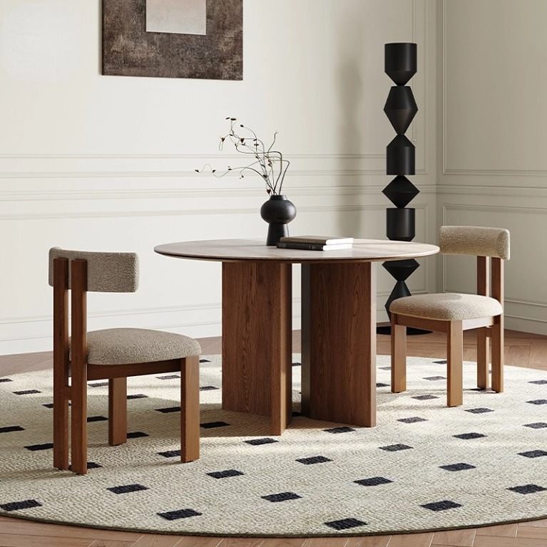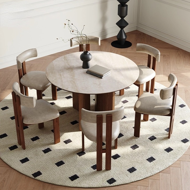 French vintage table,Solid wood cave rock table,Designer home round dining table