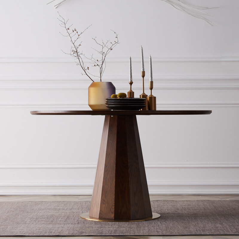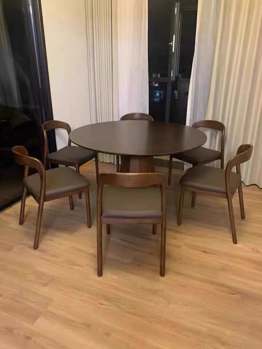 Vintage Round Table Pine Scandinavian Solid Wood Home Small Household Dining Table and Chair Combination Used Walnut Color Coffee Table Reception Table
