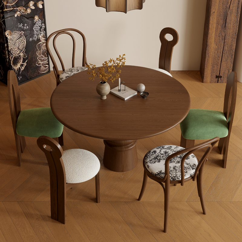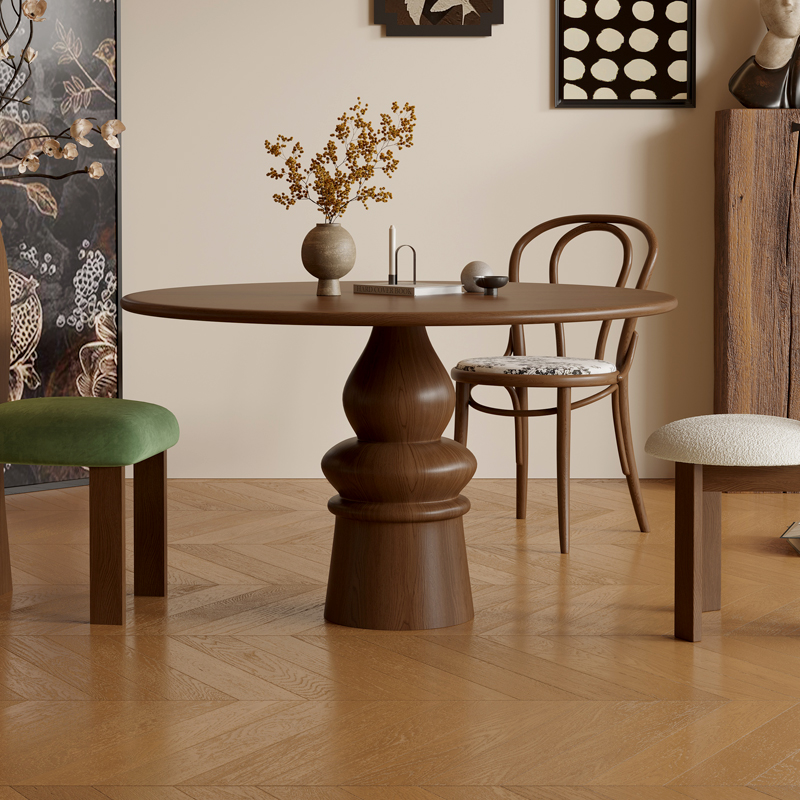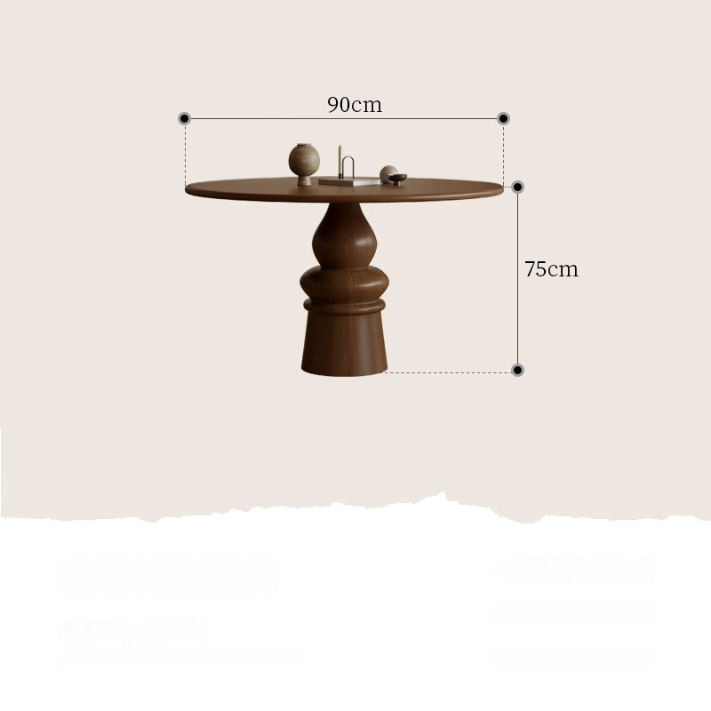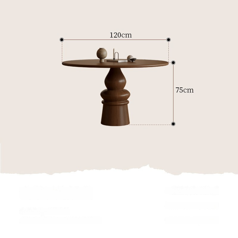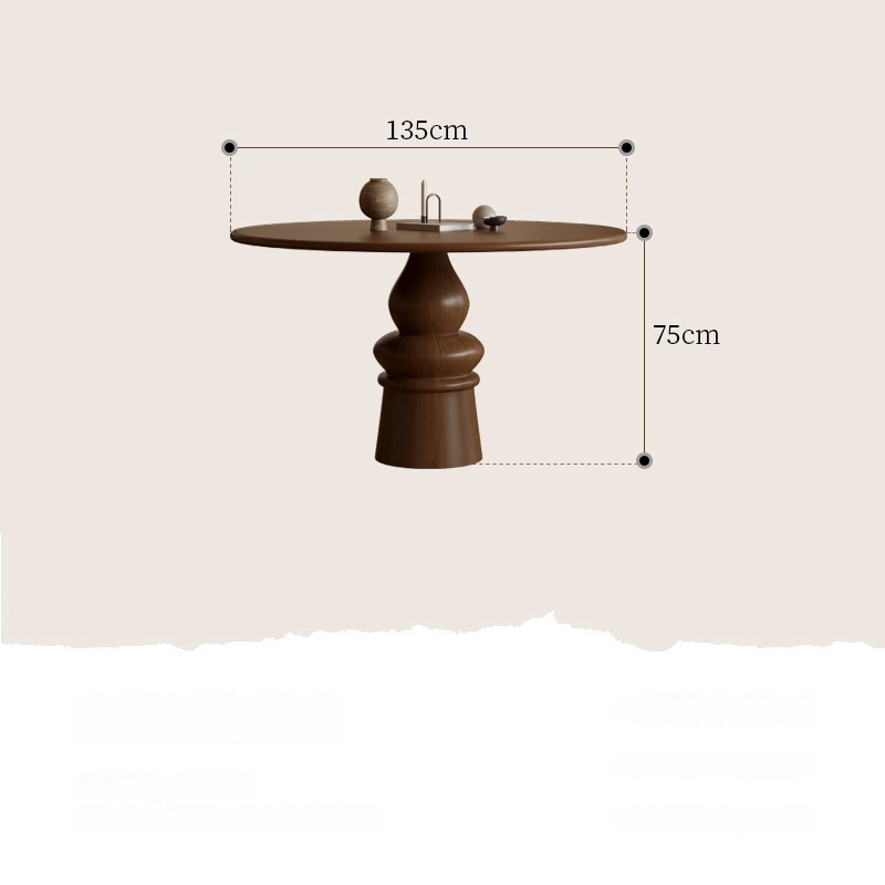 Italian high-end solid wood dining table,Round family dining table with turntable,New wabi-Sabi in walnut matte SLATE round table