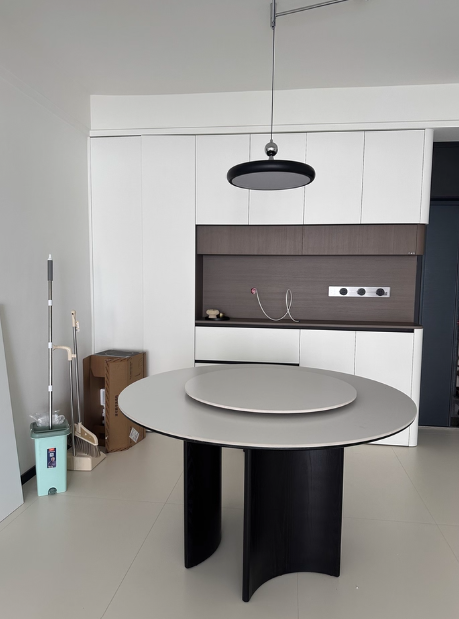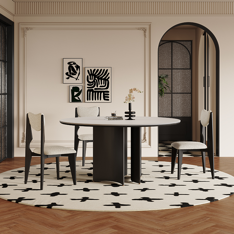 Nordic solid wood round dining table,Coffee table,Minimalist cave stone slab surprise silent wind table