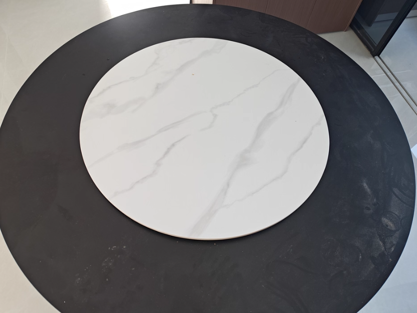 Italian high-end solid wood dining table,Round family dining table with turntable,New wabi-Sabi in walnut matte SLATE round table
