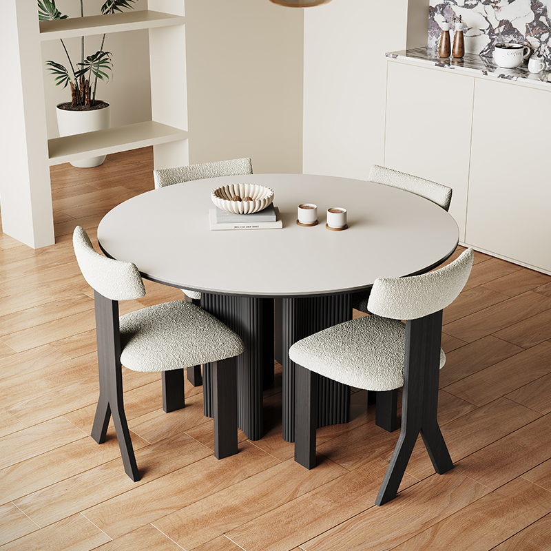 Round table with matte SLATE,Modern simple Italian dining table,High-end ash wood solid wood round table