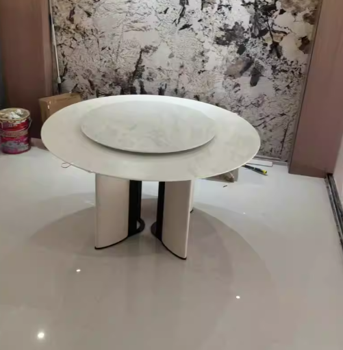 Nordic solid wood round dining table,Coffee table,Minimalist cave stone slab surprise silent wind table