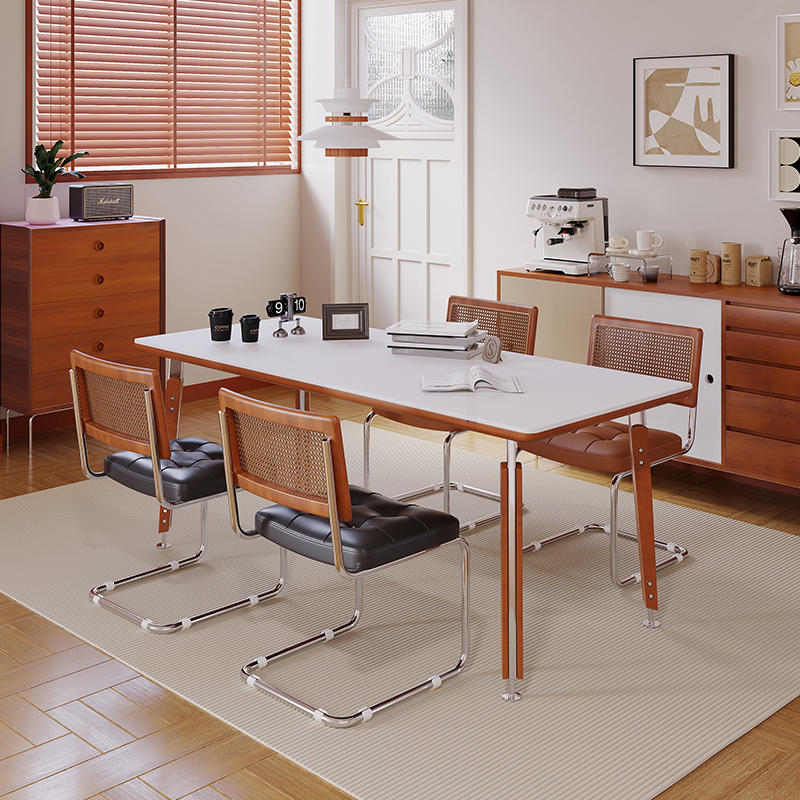 This mid-century inspired stone table is like a timeless work of art. Its striking appearance, especially the white stone surface, complements our existing furniture beautifully, adding a touch of vintage elegance to the dining space.