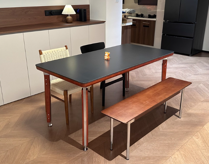 The stone surface is scratch-resistant, the solid wood feels warm and natural, and the legs are sturdy — a perfect blend of beauty and practicality.