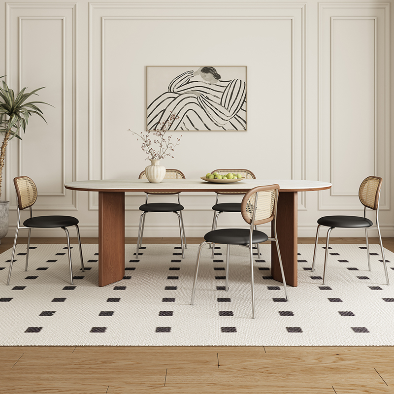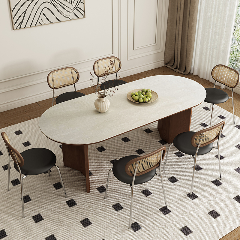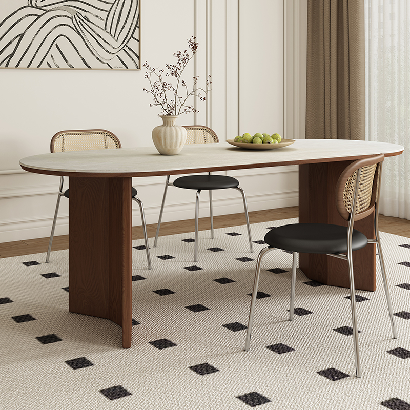 Italian high-end solid wood dining table,Round family dining table with turntable,New wabi-Sabi in walnut matte SLATE round table