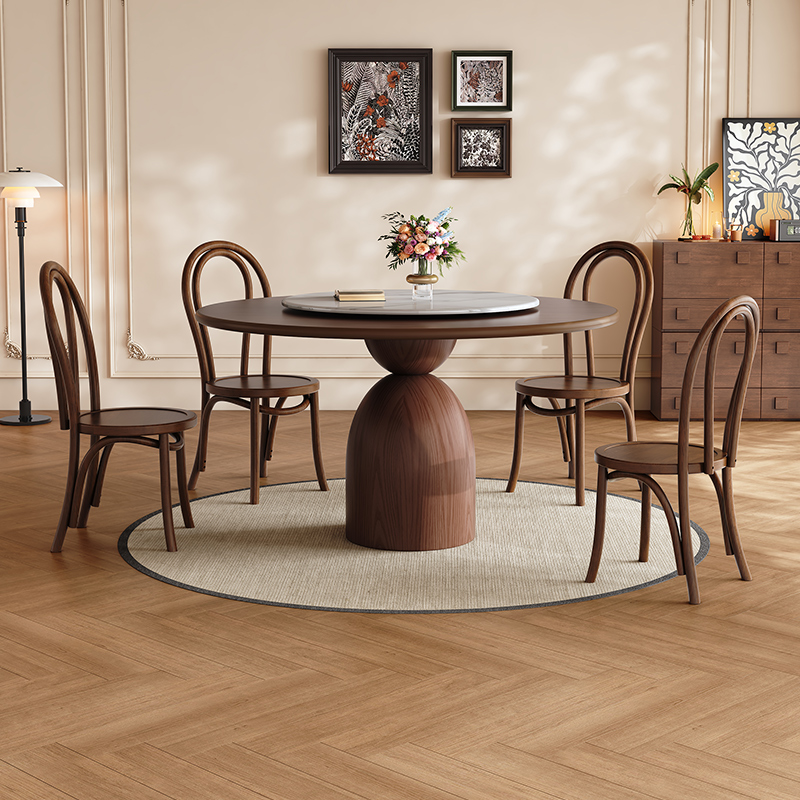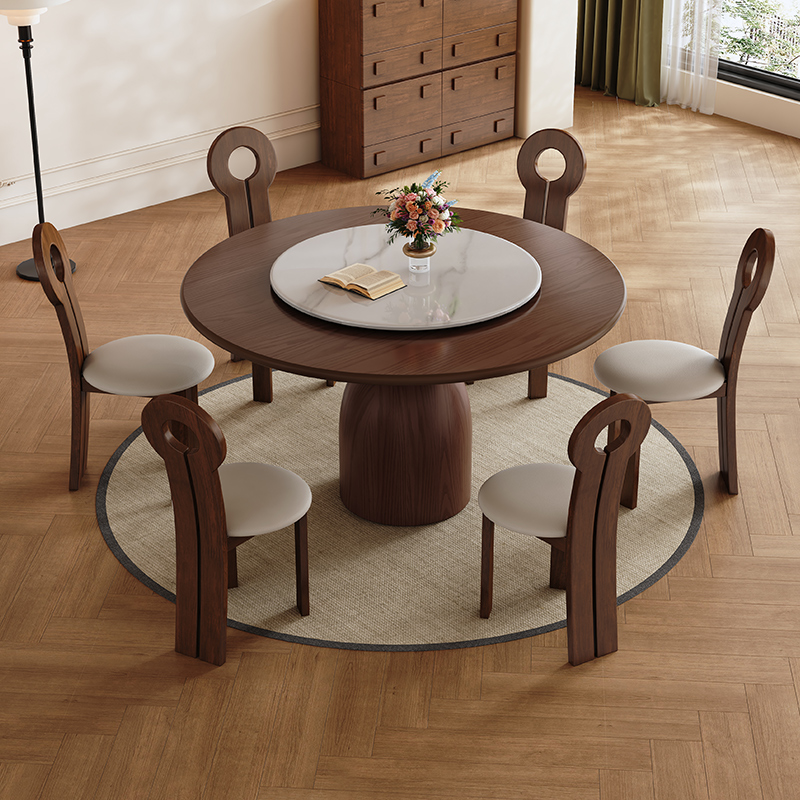 Nordic solid wood round dining table,Coffee table,Minimalist cave stone slab surprise silent wind table