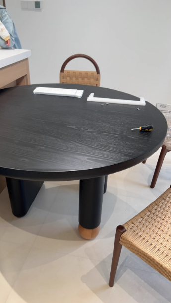 Nordic solid wood round dining table,Coffee table,Minimalist cave stone slab surprise silent wind table