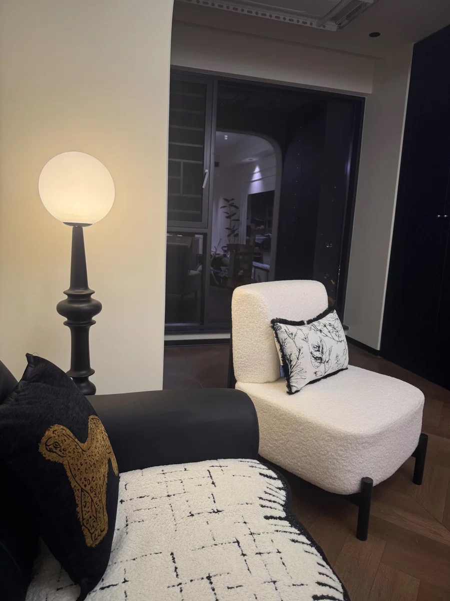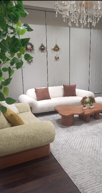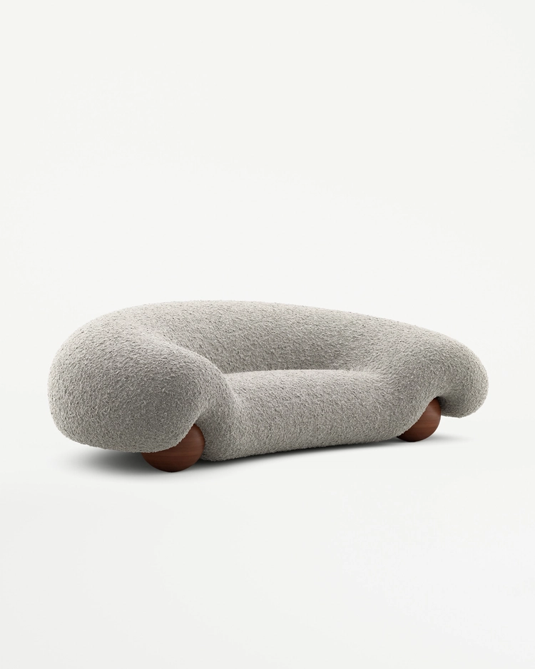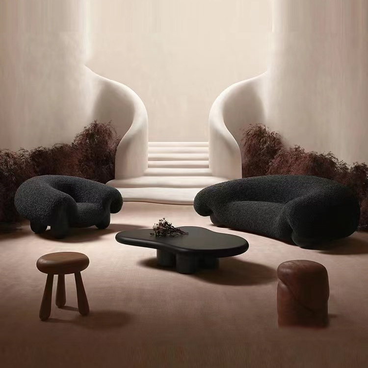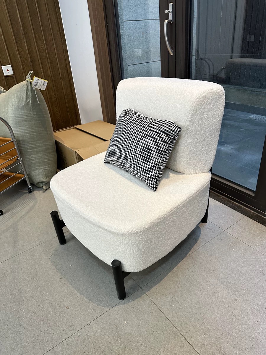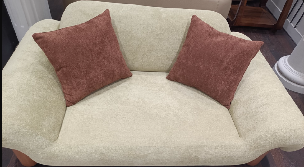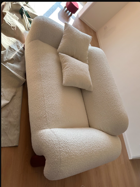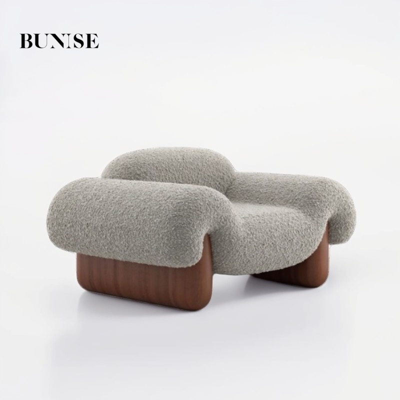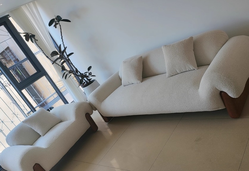 Italian Style Minimalist Fabric Sofa for Living Room, Teddy Fleece Material with Wooden Legs