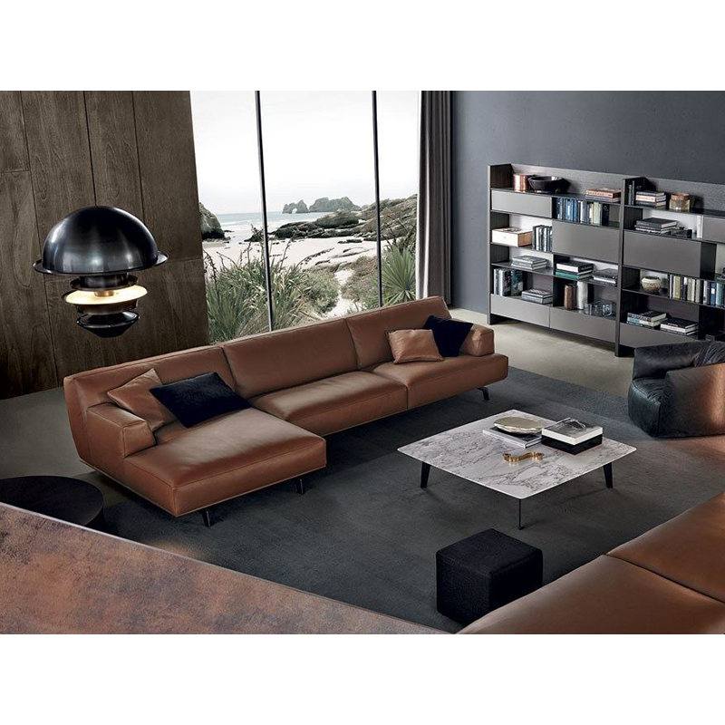 Genuine Leather,Living Room, Simple, Modern, Inline 3/4 Seat, L-Shape