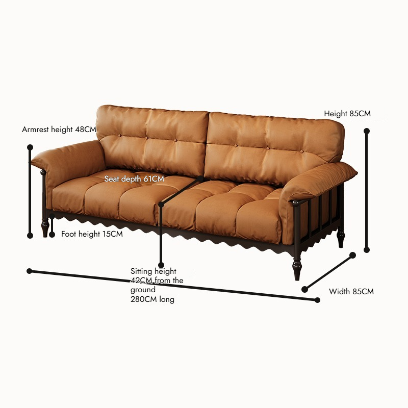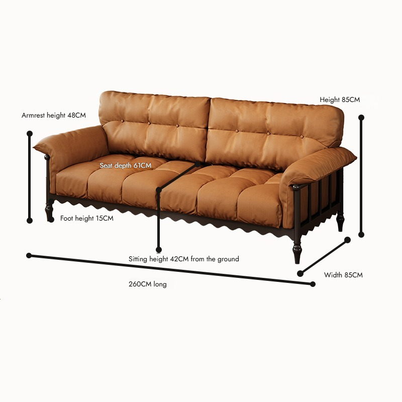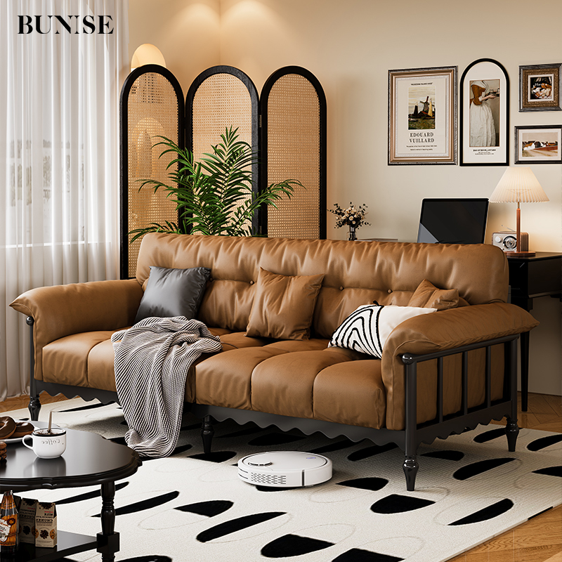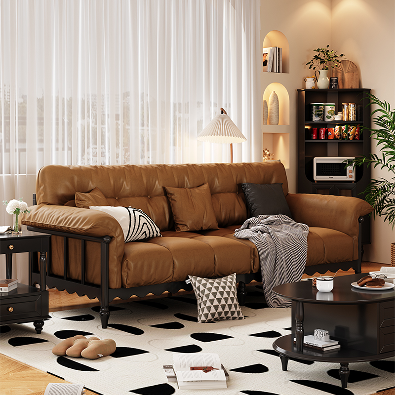 American Vintage Genuine Leather 3-Seater Sofa Solid Ash Wood Frame French Mid-Century Style for Small Living Room or Condo