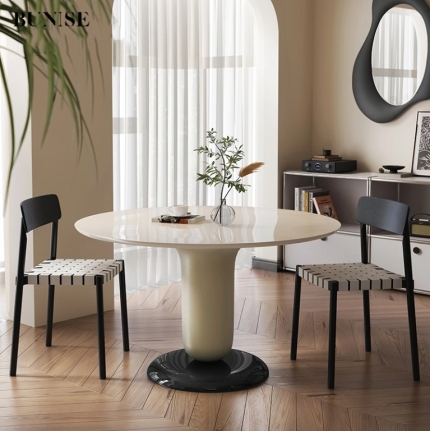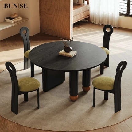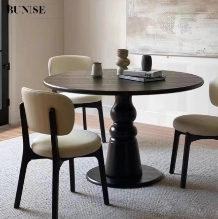 French retro oval round table,Ancient solid wood dining table,Round casual coffee table desk Meeting table