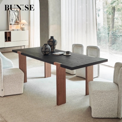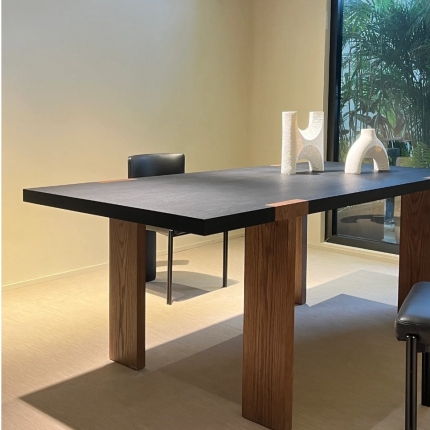 Solid Wood Dining Table Scandinavian Minimalist Designer Long Table Black Vintage Desk Desk Study Table Log Long Table Workstation