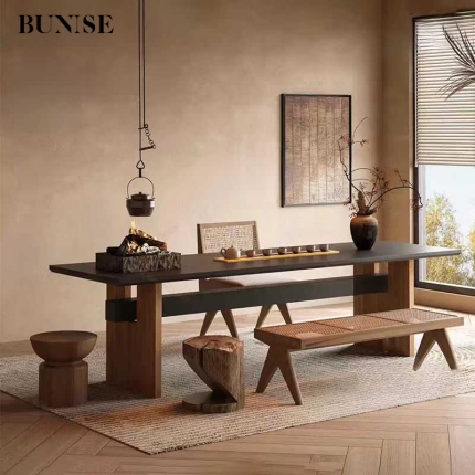 Wabi-sabi Dining Table Black Scandinavian Vintage Desk Desk Designer Rectangle Workbench Conference Table